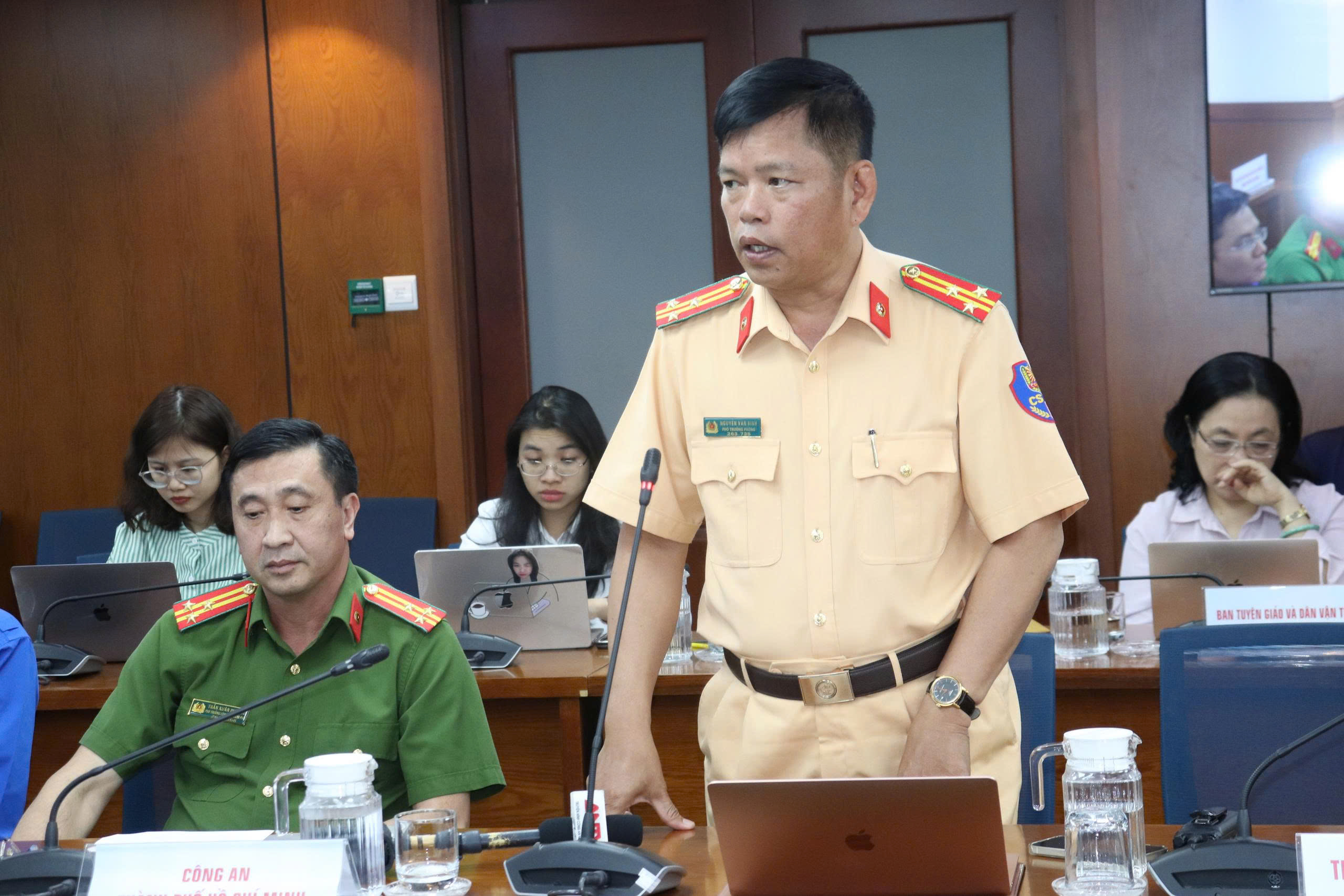 Thượng tá Nguyễn Văn Bình thông tin về tình hình giao thông tại họp báo