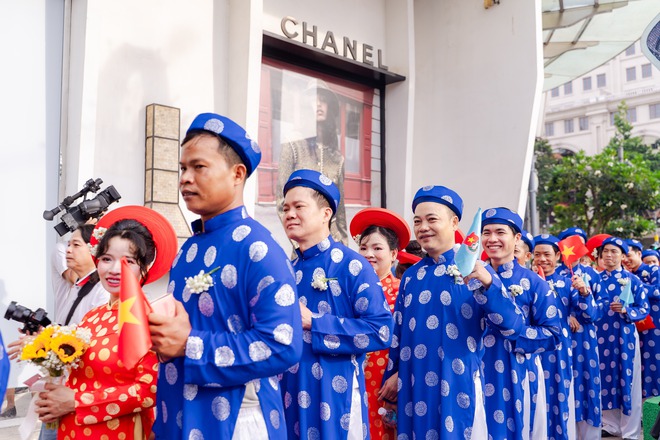 Sau khi trang trọng làm lễ dâng hoa tại Công viên Tượng đài Chủ tịch Hồ Chí Minh, các cặp đôi đã bắt đầu hành trình "rước dâu" độc đáo và ý nghĩa nhất.
