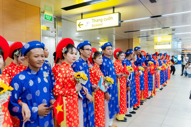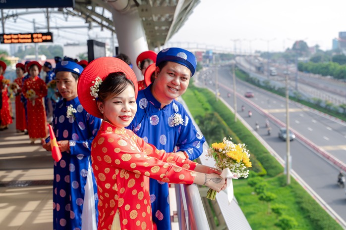Đây không chỉ là đám cưới sau nhiều năm chờ đợi, mà còn là lần đầu nhiều cặp đôi đặt chân lên tuyến Metro số 1 trong “Lễ cưới tập thể”