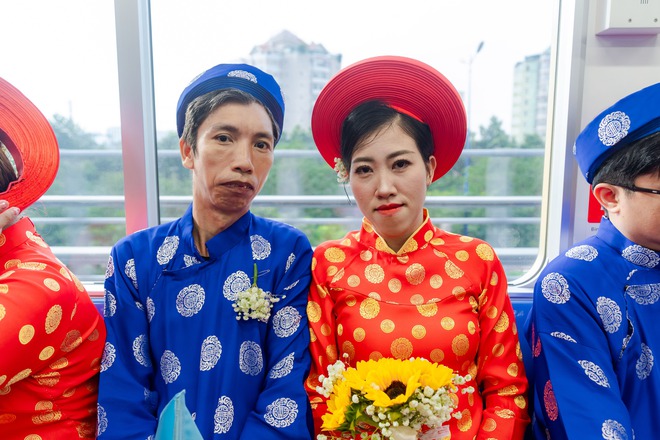 "Bình thường rước dâu bằng xe nay được rước dâu bằng Metro thấy rất hay và thích thú. Tôi thấy TP HCM mình ngày càng hiện đại" - anh Đoàn Ngọc Minh và vợ hạnh phúc trong ngày trọng đại mà cả 2 đã chờ đợi nhiều năm, chia sẻ.