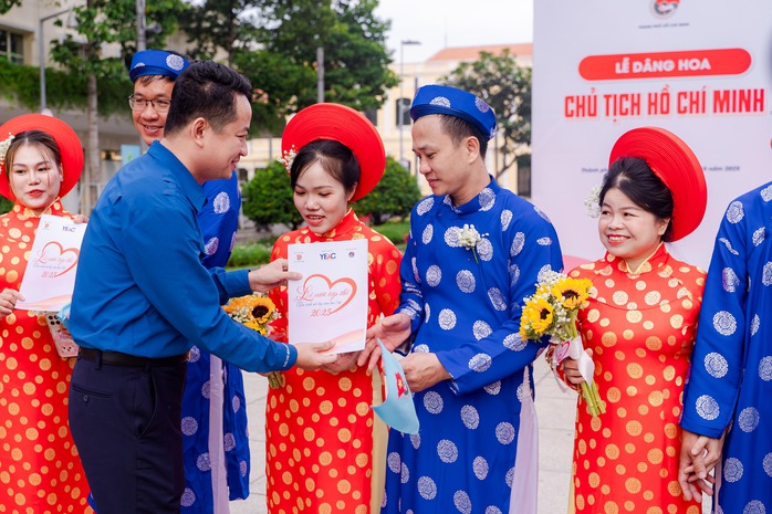 Trong khuôn khổ chương trình "Lễ cưới tập thể" năm 2025, 50 cặp đôi cô dâu chú rể là thanh niên, công nhân - lao động có hoàn cảnh khó khăn với một ngày vui trọn vẹn. Chương trình do Trung tâm Hỗ trợ Thanh niên Công nhân TP HCM (thuộc Thành Đoàn) tổ chức.