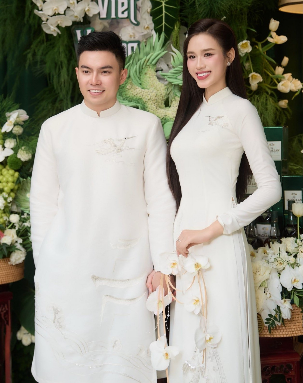 Sau lễ ăn hỏi, Đỗ Thị Hà đăng loạt ảnh trong ngày trọng đại. Đây cũng là lần đầu Hoa hậu Việt Nam đăng ảnh rõ mặt doanh nhân Viết Vương lên mạng xã hội.