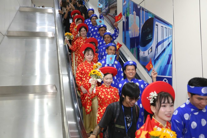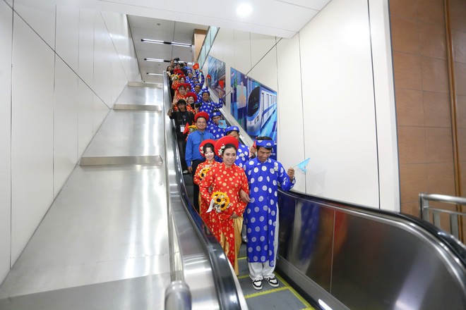 Các cặp đôi được di chuyển bằng Metro để đi đến các địa điểm diễn ra lễ cưới
