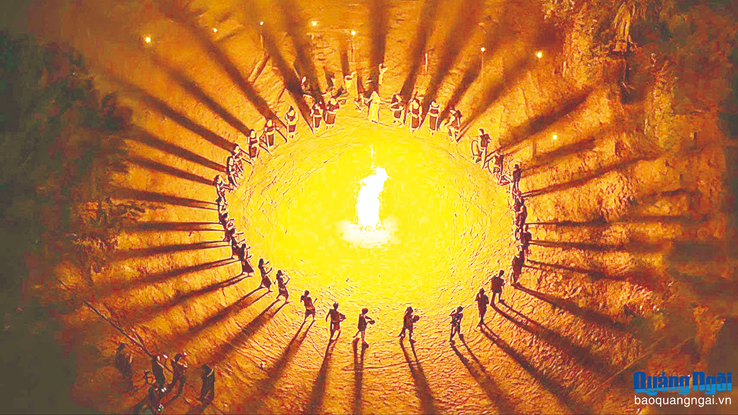 Trong đêm, tôi ngỡ ngàng ngắm vòng người tay nắm tay, chân nhún nhảy theo tiếng cồng chiêng, rồi bước vòng quanh đống lửa lúc phát ra tiếng nổ lép bép của vài nhánh củi còn chưa được khô hẳn, lúc phần phật cuốn lên theo gió reo vui. Trong đầu lại bật lên câu hát rộn ràng trong ca khúc “Đêm xoang Tây Nguyên” của nhạc sĩ Văn Chừng: “Những bàn chân, bàn chân trần trên đất, lướt đi rộn rã bồi hồi. Tiếng hú bay xa chín suối mười đồi, cái cồng, con chiêng đêm nay cũng thức”.