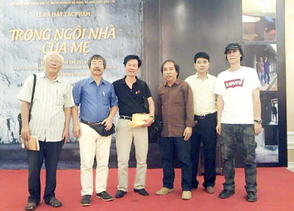 Nhà thơ Đàm Khánh Phương (thứ 3 từ trái sang) cùng bạn bè văn chương, nghệ thuật.