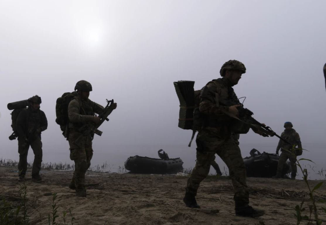 Các binh sỹ Ukraine đi dọc sông Dnipro. Ảnh: AP