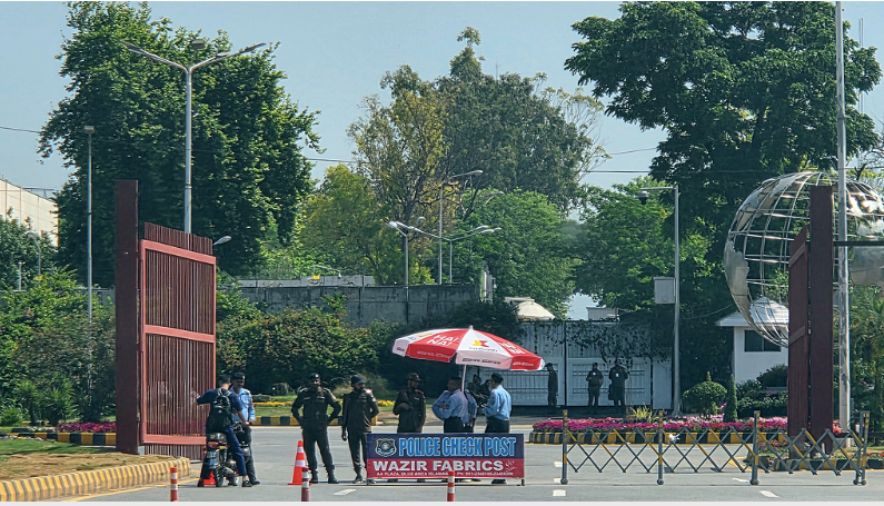 Cảnh sát địa phương đang tiến hành kiểm tra “khu vực đỏ” của Islamabad, Pakistan, ngày 19 -4. Ảnh: VCG