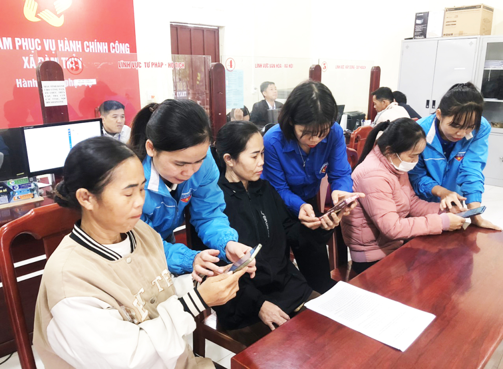 Bằng cách “làm mẫu - kèm tay - theo việc”, đội ngũ cán bộ xã, giáo viên, đoàn viên thanh niên đã mang tinh thần “đi từng nhà, bám từng nhóm”, giống như các lớp học xóa mù chữ thuở nào. Các Tổ công nghệ số cộng đồng chia nhóm hoạt động theo xóm, theo nhóm tuổi: lớp dành cho người trung, cao tuổi, lớp cho phụ nữ, nhóm thực hành cho thanh thiếu niên, nhóm hỗ trợ thực tế tại Trung tâm Phục vụ hành chính công xã.