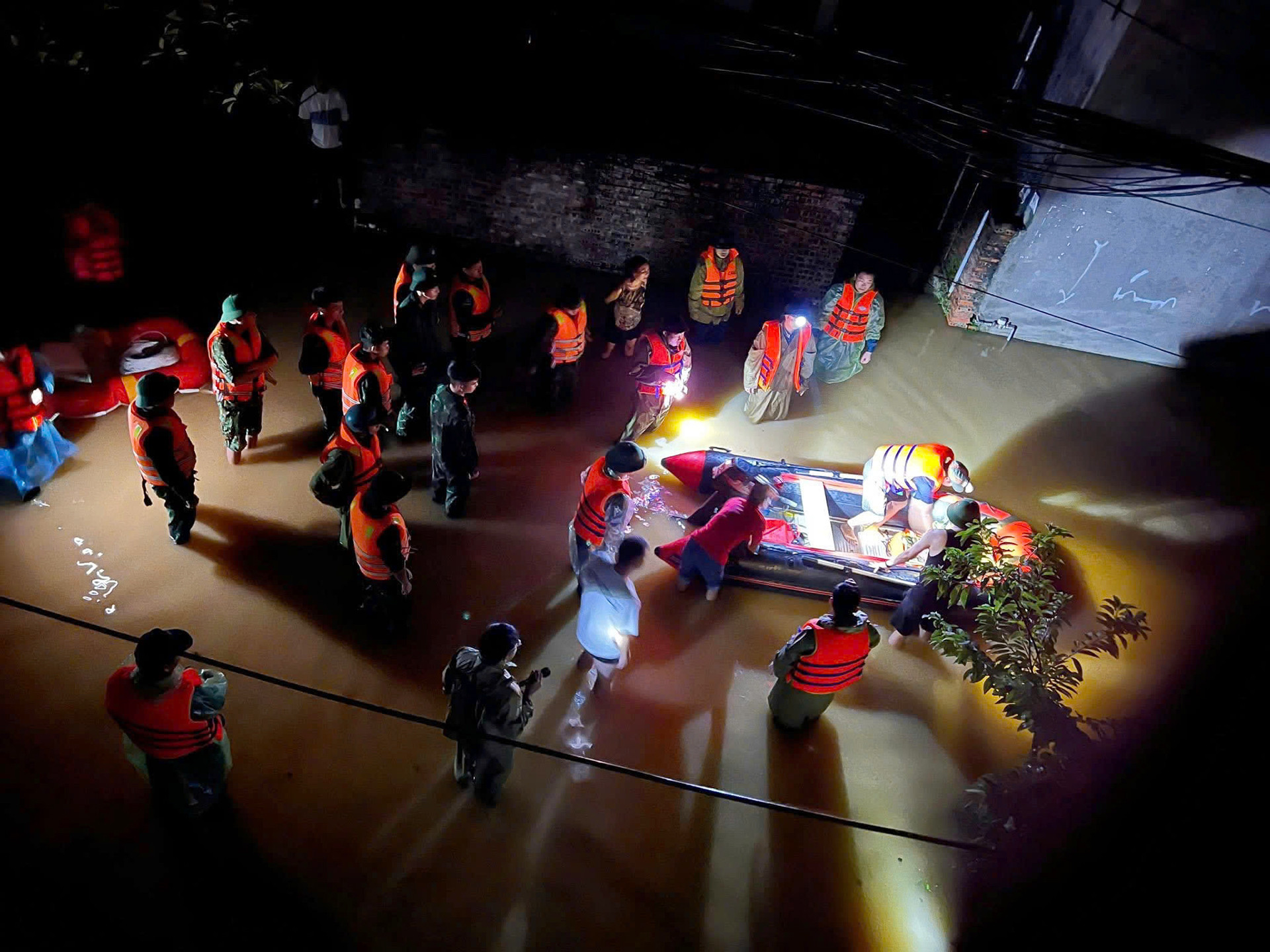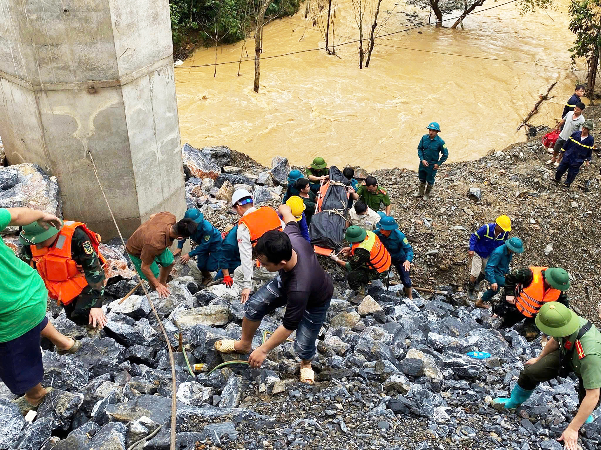 Hàng trăm cán bộ, chiến sĩ cùng các phương tiện chuyên dụng đã được huy động để tham gia cứu hộ, di dời dân khỏi vùng nguy hiểm và tìm kiếm người mất tích.