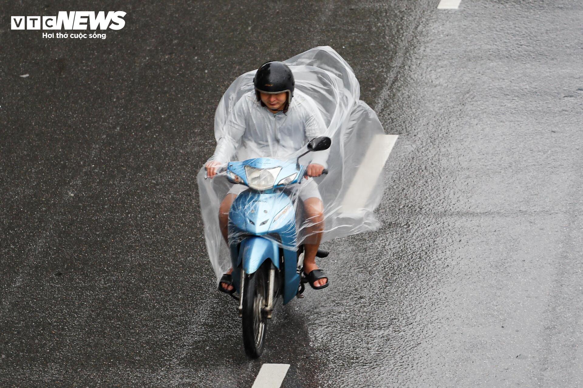 Mưa dông kèm gió lớn làm tầm nhìn hạn chế, gây nhiều khó khăn cho người dân khi di chuyển.