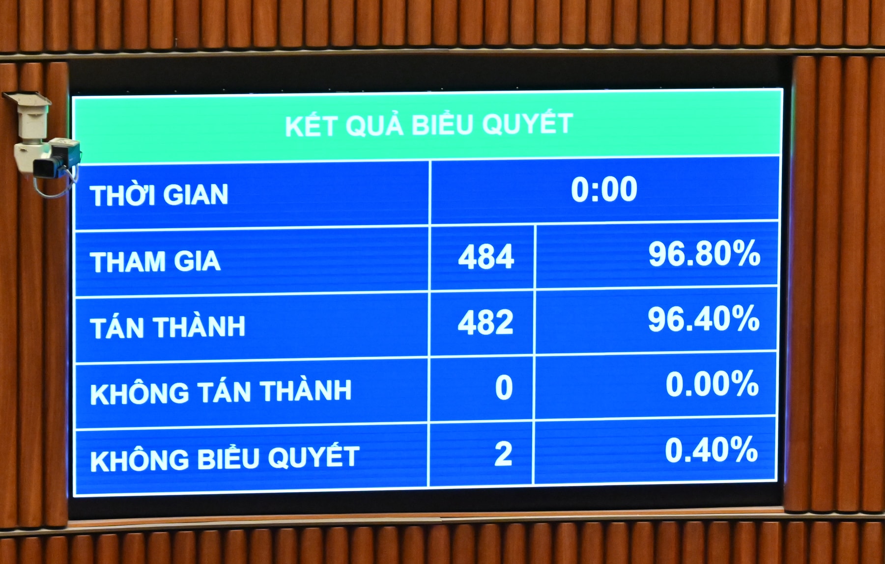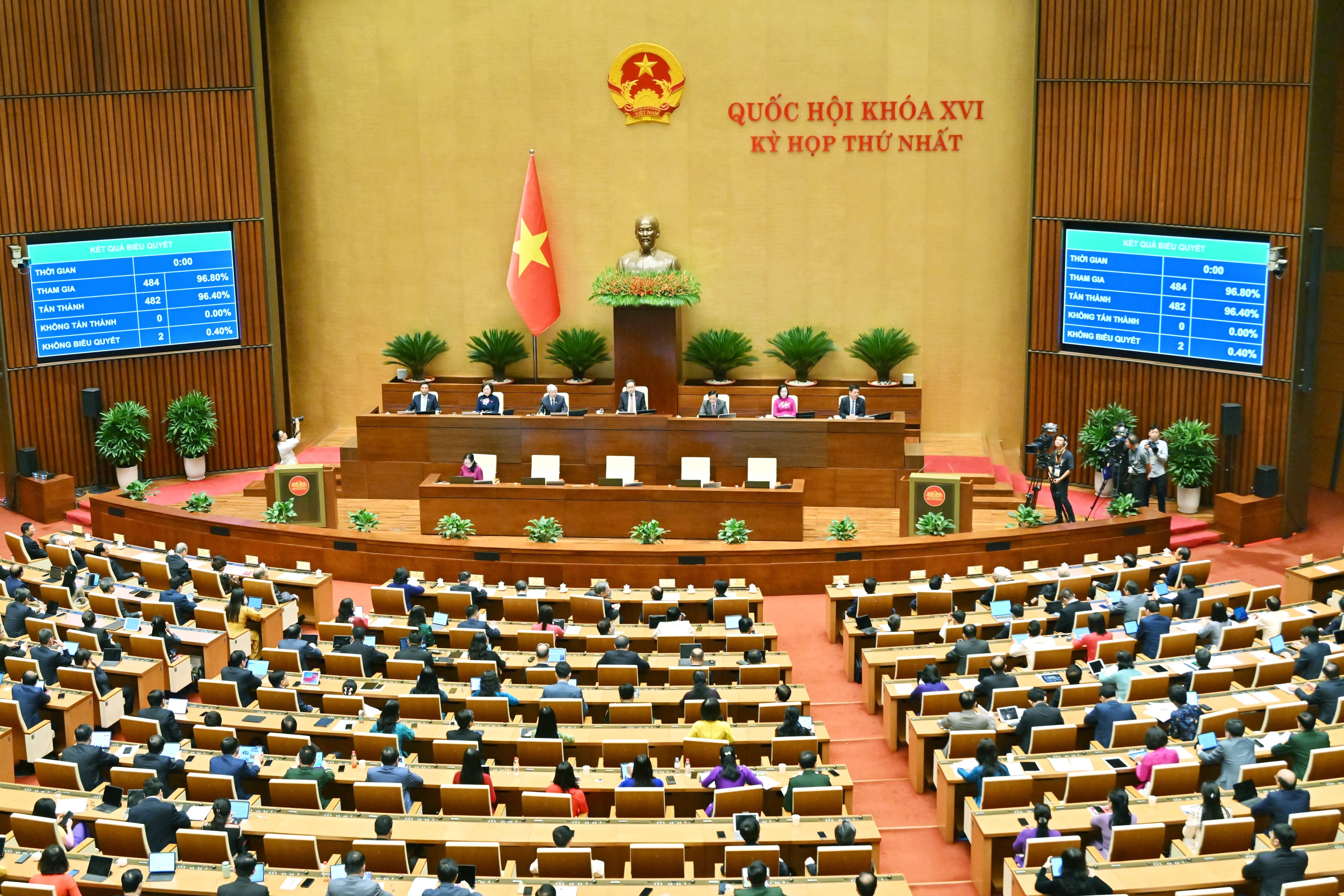 Quốc hội thông qua Nghị quyết về kế hoạch đầu tư công trung hạn giai đoạn 2026 – 2030 với 482/484 tổng số ĐBQH tham gia biểu quyết tán thành, đạt tỷ lệ 99,58%. Ảnh: Quang Khánh