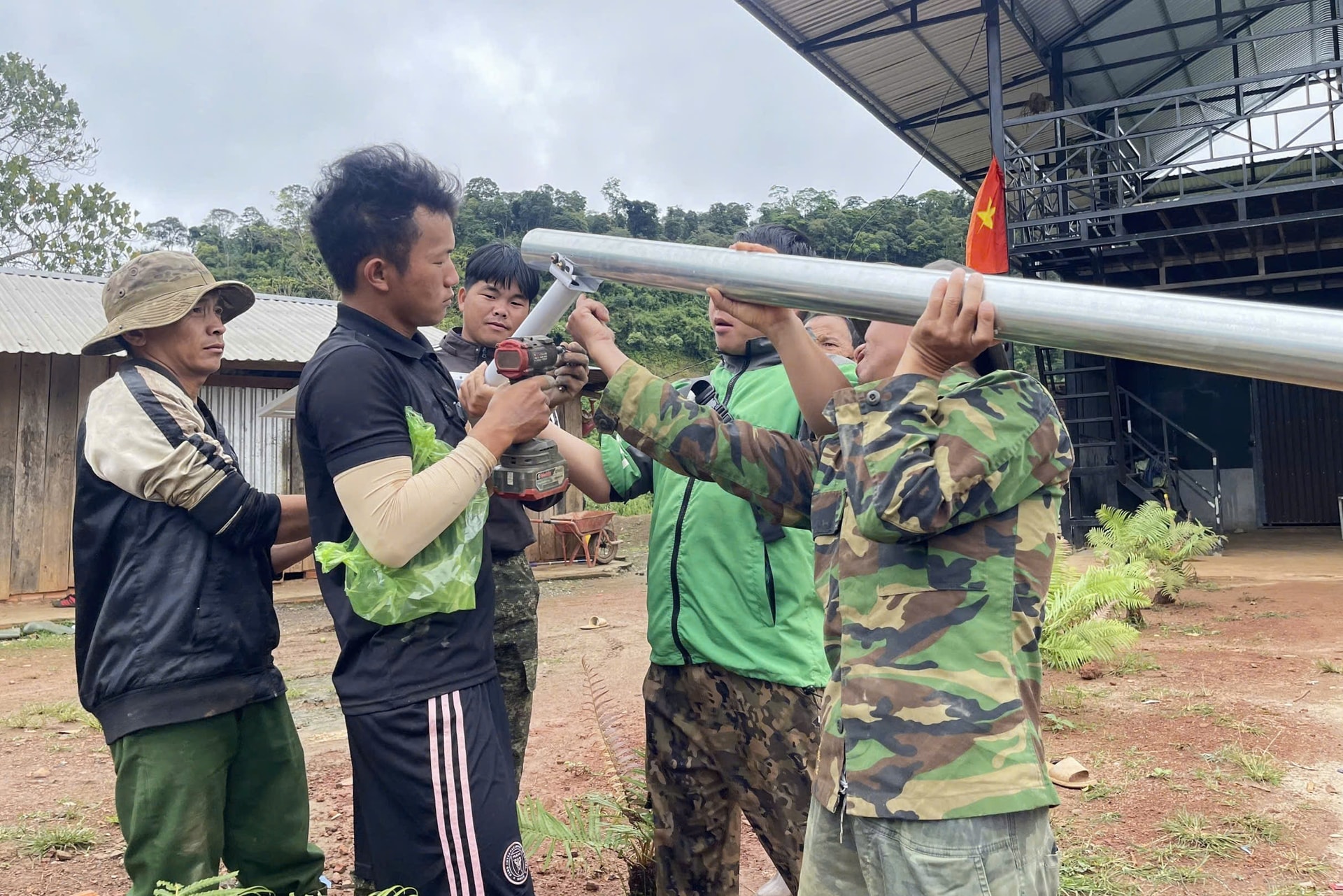 Cán bộ, Nhân dân, tín đồ tôn giáo thôn Đắk Snao, xã Quảng Sơn đóng góp sức người, sức của thực hiện lắp đặt 50 trụ, bóng đèn năng lượng mặt trời