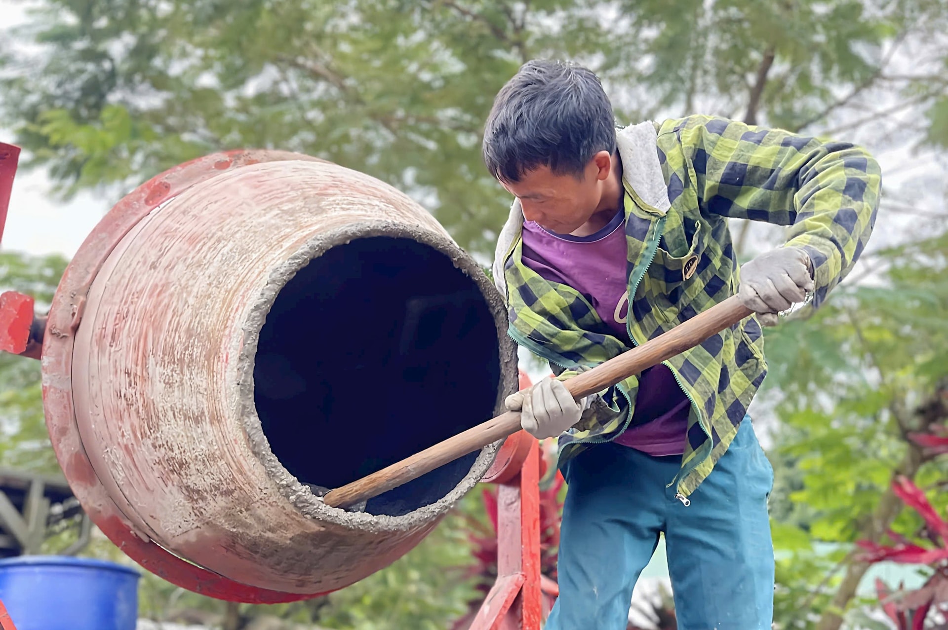 Sáng sớm, con đường đất đỏ nơi bon Sanar, xã Quảng Sơn trở nên nhộn nhịp hơn hẳn. Tiếng máy múc, tiếng cuốc, xẻng rộn vang, bà con trong bon ai nấy đều hồ hơi, tay thoăn thoát dọn dẹp, phát cỏ làm đường.