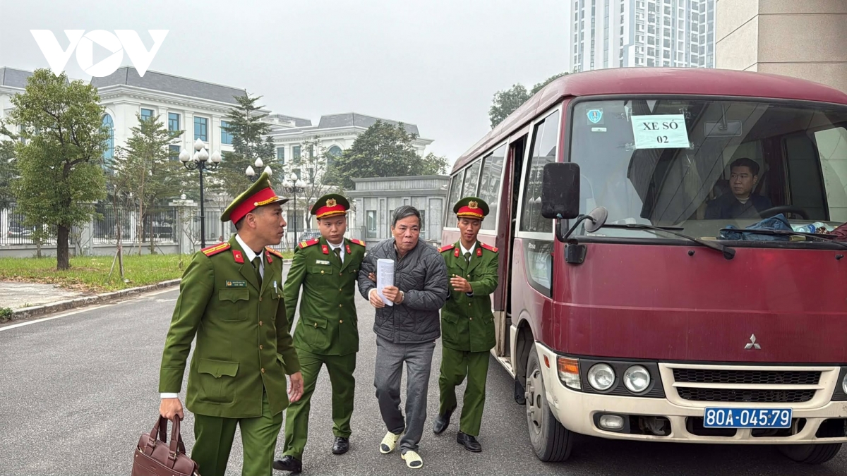 Khoảng 7 giờ sáng ngày 26/1, lực lượng chức năng đã dẫn giải các bị cáo là cựu lãnh đạo VICEM đến TAND TP Hà Nội để hầu tòa, liên quan đến dự án “Trung tâm điều hành và giao dịch VICEM” tại Khu đô thị mới Cầu Giấy (Hà Nội) bị bỏ hoang. (Ảnh: Trọng Phú)