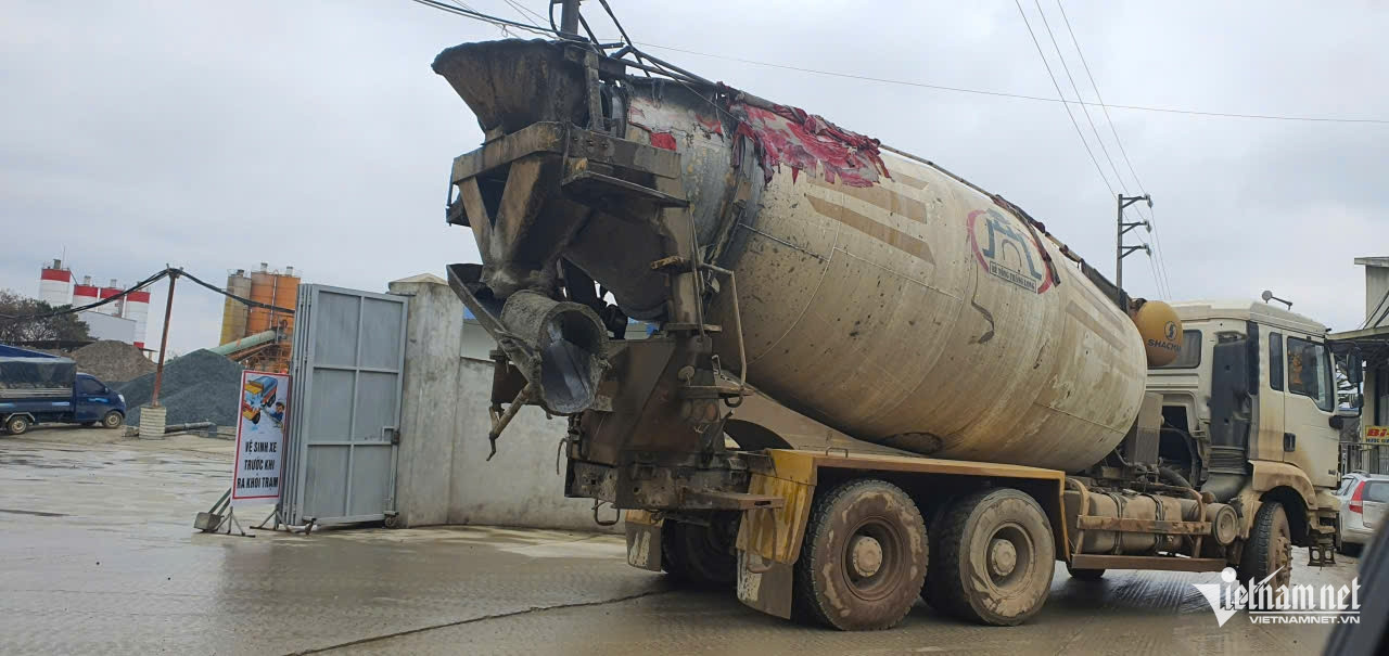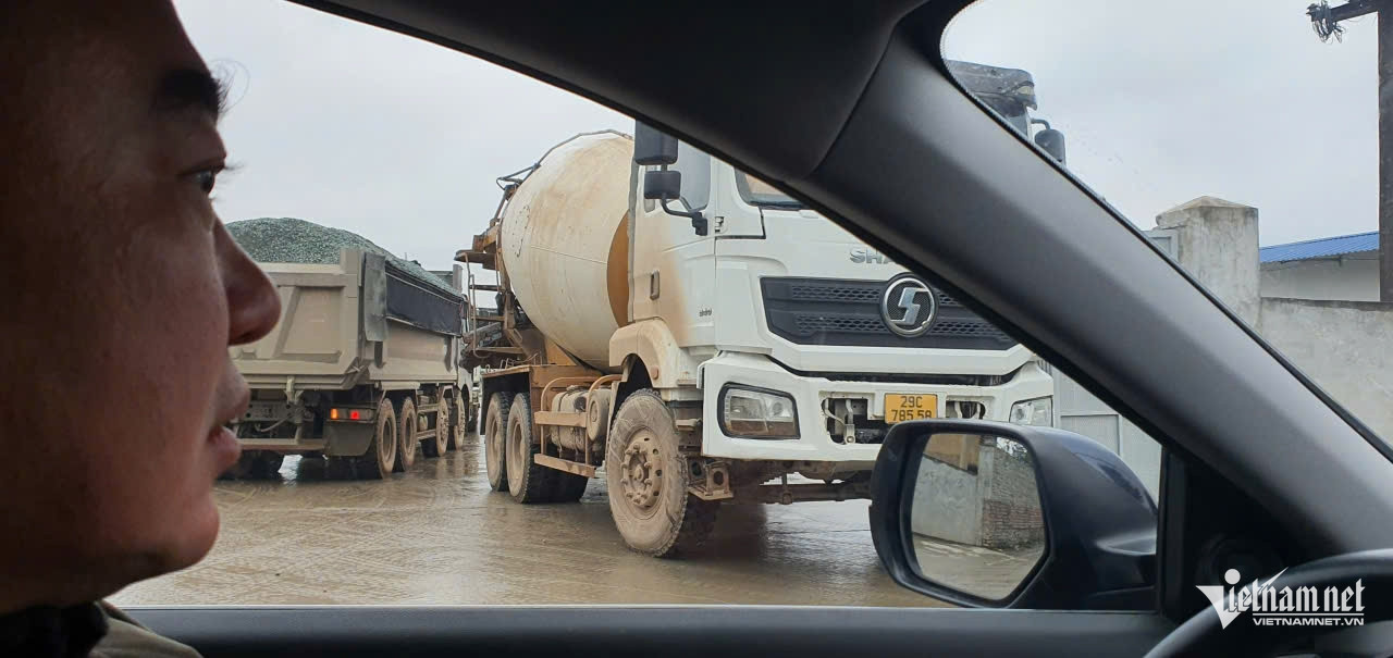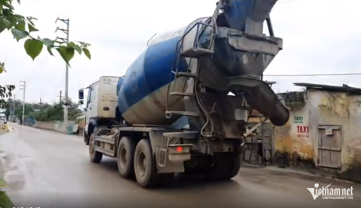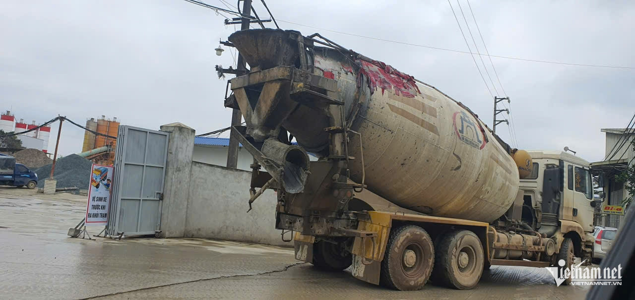 Xe chở bê tông vẫn hoạt động bình thường trước sự ngỡ ngàng của người dân. Ảnh: Chụp trưa 22/1.