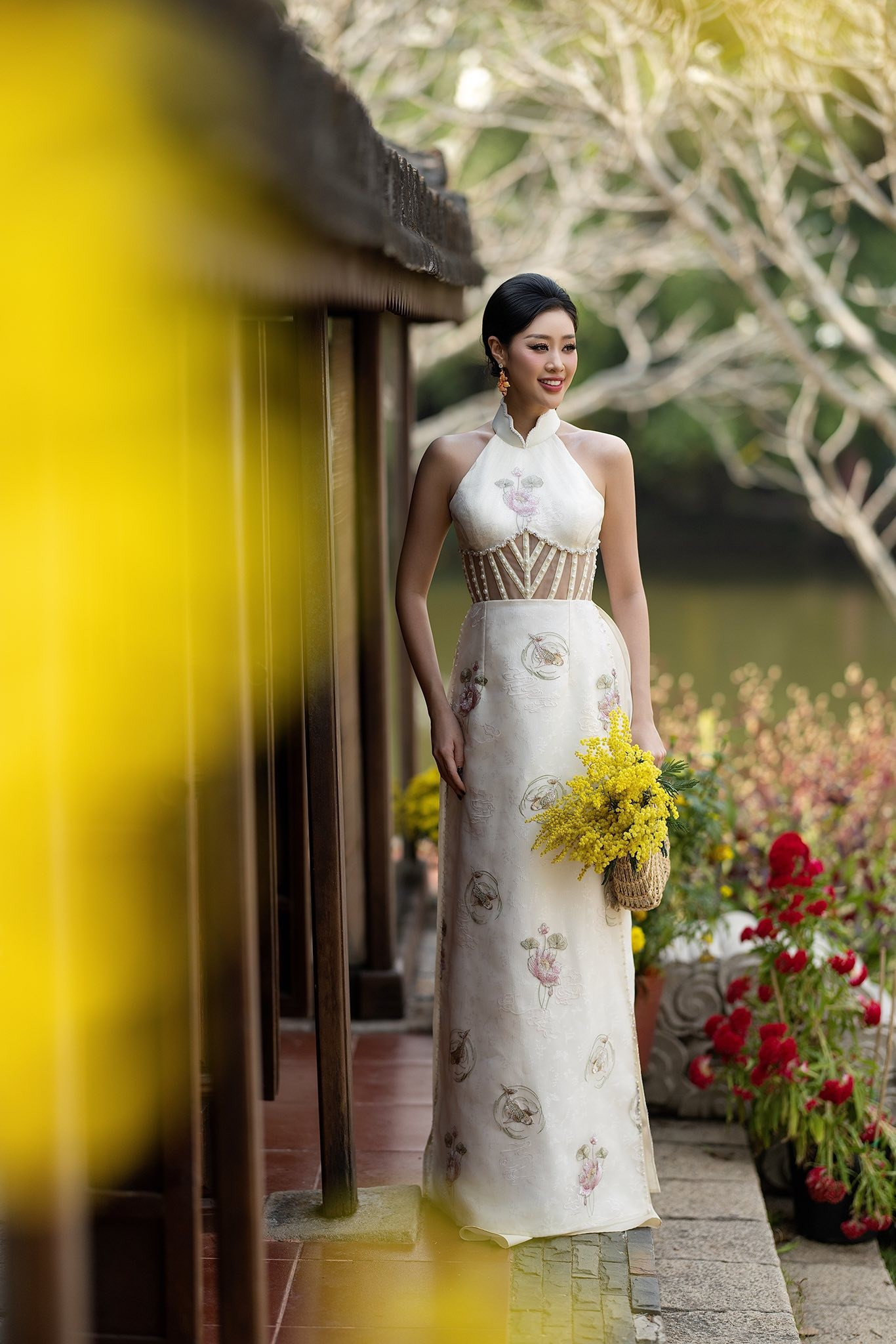 Miss World Vietnam 2023 Huỳnh Trần Ý Nhi lựa chọn nhiều kiểu trang phục truyền thống khi tham gia các sự kiện cuối năm.