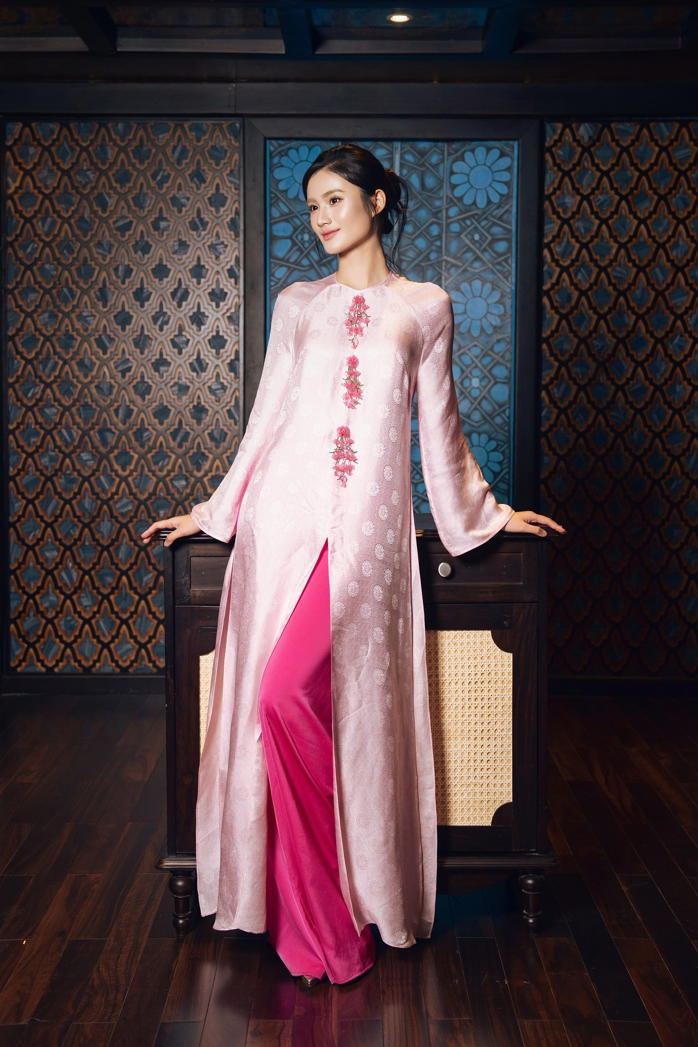 Á hậu 2 Hoa hậu Việt Nam 2024 Nguyễn Thị Vân Nhi xinh đẹp như thiếu nữ Hà Thành xưa với áo dài hồng, sắc sảo như mỹ nhân cổ trang cùng áo dài gấm.