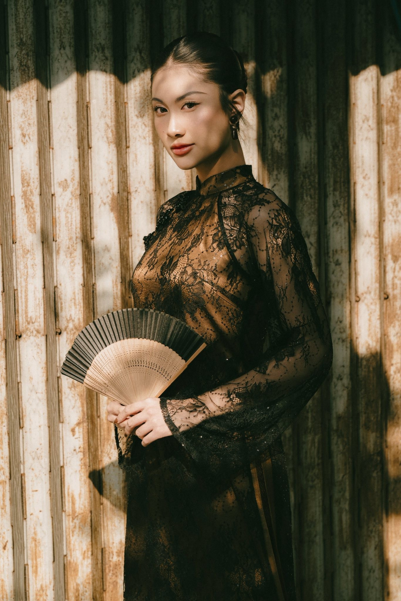 Hoa hậu Hoàn vũ Việt Nam 2025 Nguyễn Hoàng Phương Linh gây bất ngờ cùng áo dài ren màu đen, mang đến vẻ đẹp đầy bí ẩn.