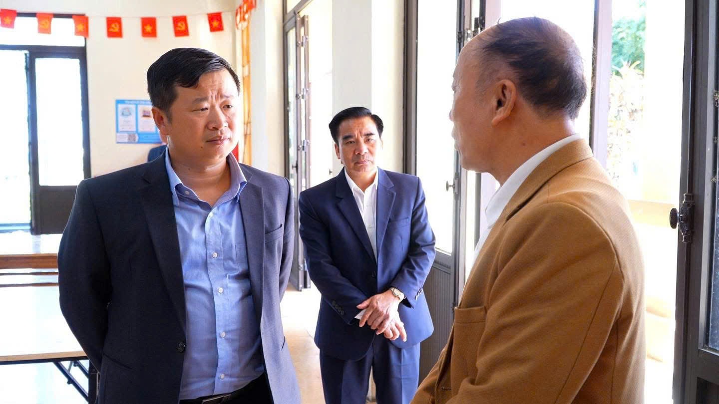 Bí thư Đảng ủy, Chủ tịch HĐND, Chủ tịch Ủy ban bầu cử xã Dân Hòa Mai Xuân Trường kiểm tra công tác chuẩn bị bầu cử các thôn. Ảnh: Phong Đỗ