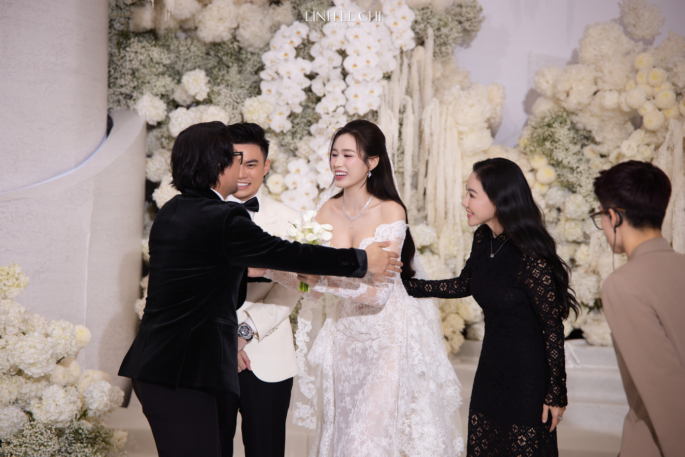 Là người gắn bó với Đỗ Hà từ khi cô đăng quang, NTK Lê Thanh Hòa có mặt để chung vui với vợ chồng trẻ.