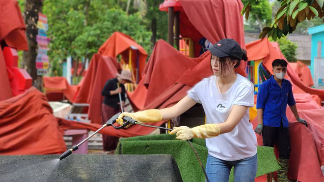 Tại đây, mọi người cùng các giáo viên và phụ huynh vệ sinh khuôn viên, lau chùi bàn ghế, giặt rèm cửa và sắp xếp lại trang thiết bị học tập, giúp ngôi trường sớm sạch sẽ trở lại, sẵn sàng đón học sinh đến lớp.