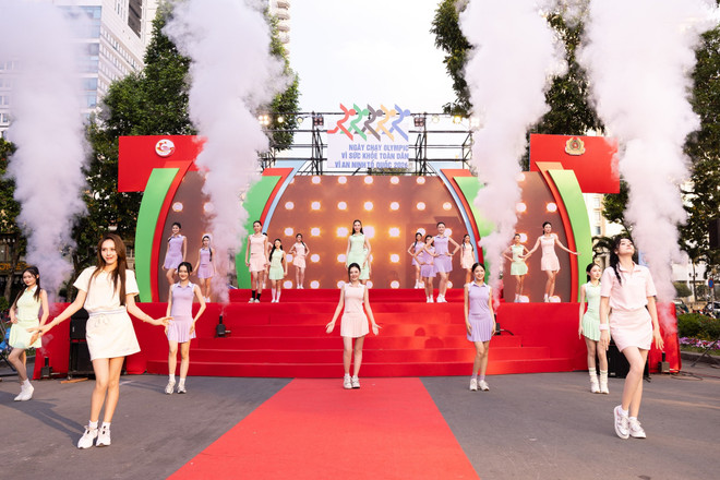 Thí sinh Miss World Vietnam 2025 khuấy động “Ngày chạy Olympic." (Ảnh: BTC)