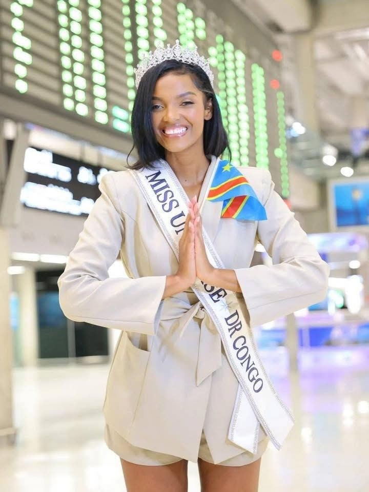 Đại diện Cộng hòa Congo khoe chân dài ở sân bay. Cô là ứng viên gây chú ý ở châu Phi.