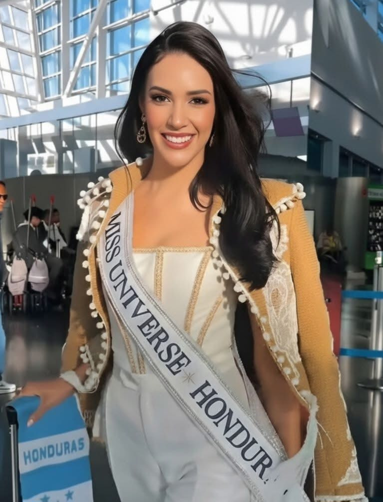 Đại diện Honduras cũng chọn trang phục tông trắng sang trọng để ra sân bay khởi hành đi Thái Lan. Cô 31 tuổi, đã có bằng Quan hệ Quốc tế và bằng thạc sĩ Truyền thông Doanh nghiệp. Cô tâm huyết với việc đấu tranh cho nhân quyền và sức khỏe tâm thần.