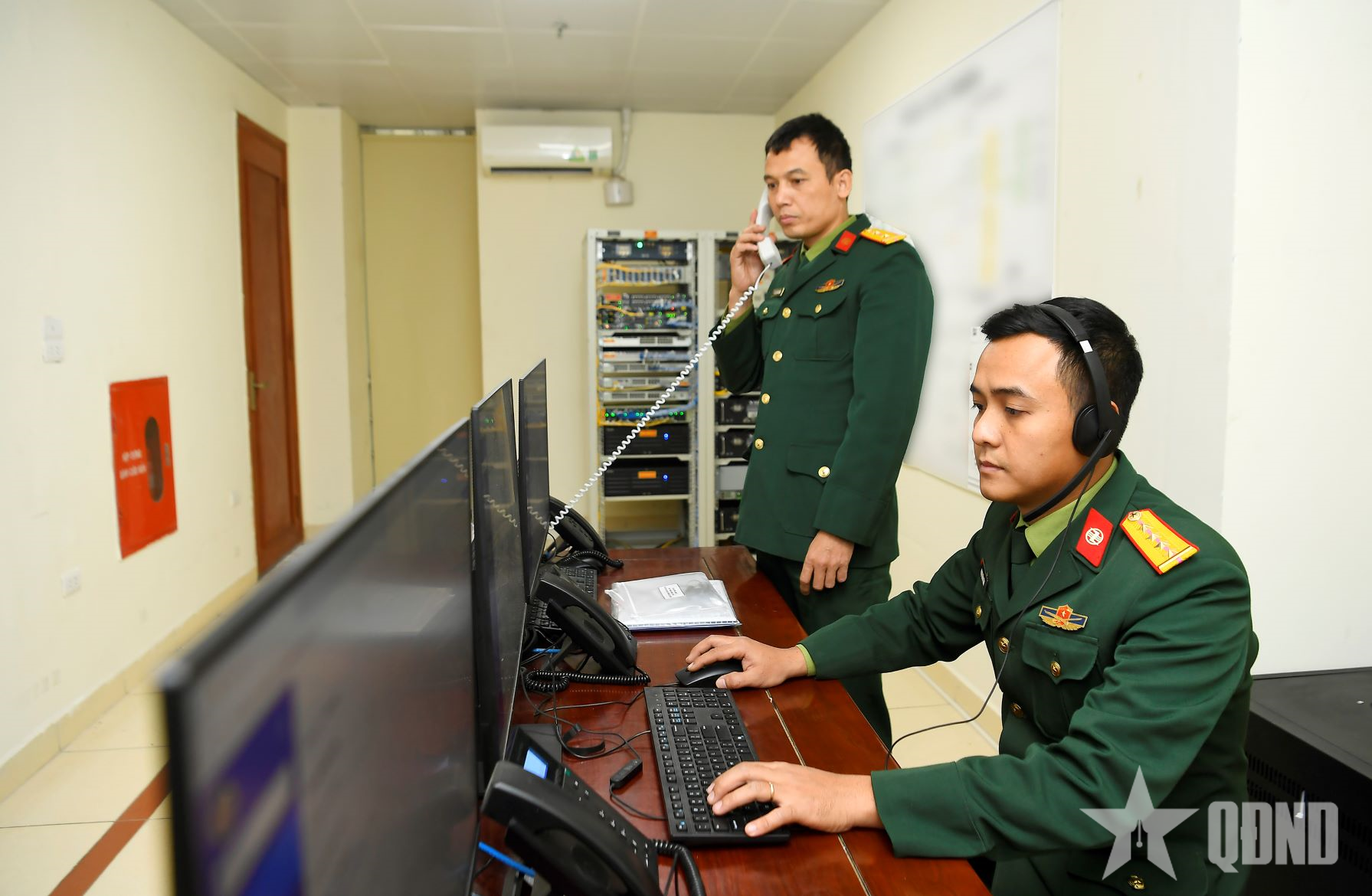 Nhân viên tổng đài Lữ đoàn 205 (Binh chủng Thông tin liên lạc) trực 24/24, bảo đảm thông tin liên lạc, truyền hình phục vụ Đại hội XIV của Đảng. Ảnh: TUẤN HUY