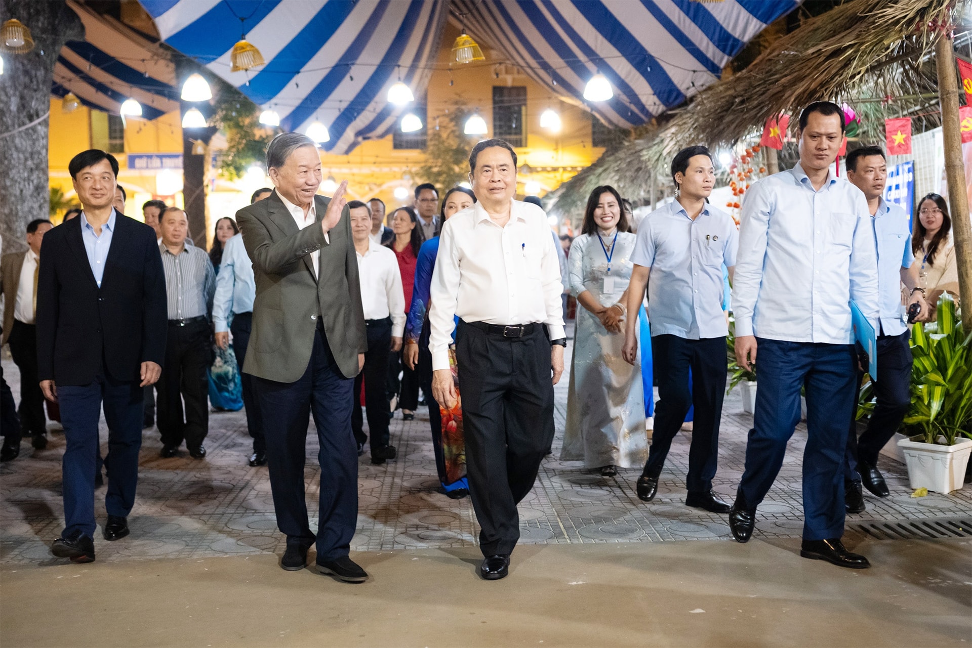 Tổng Bí thư Tô Lâm, Chủ tịch Quốc hội Trần Thanh Mẫn cùng các đại biểu tới dự Ngày hội đại đoàn kết toàn dân tộc với nhân dân liên địa bàn dân cư Cụm 1, phường Ba Đình, Hà Nội, ngày 16/11/2025