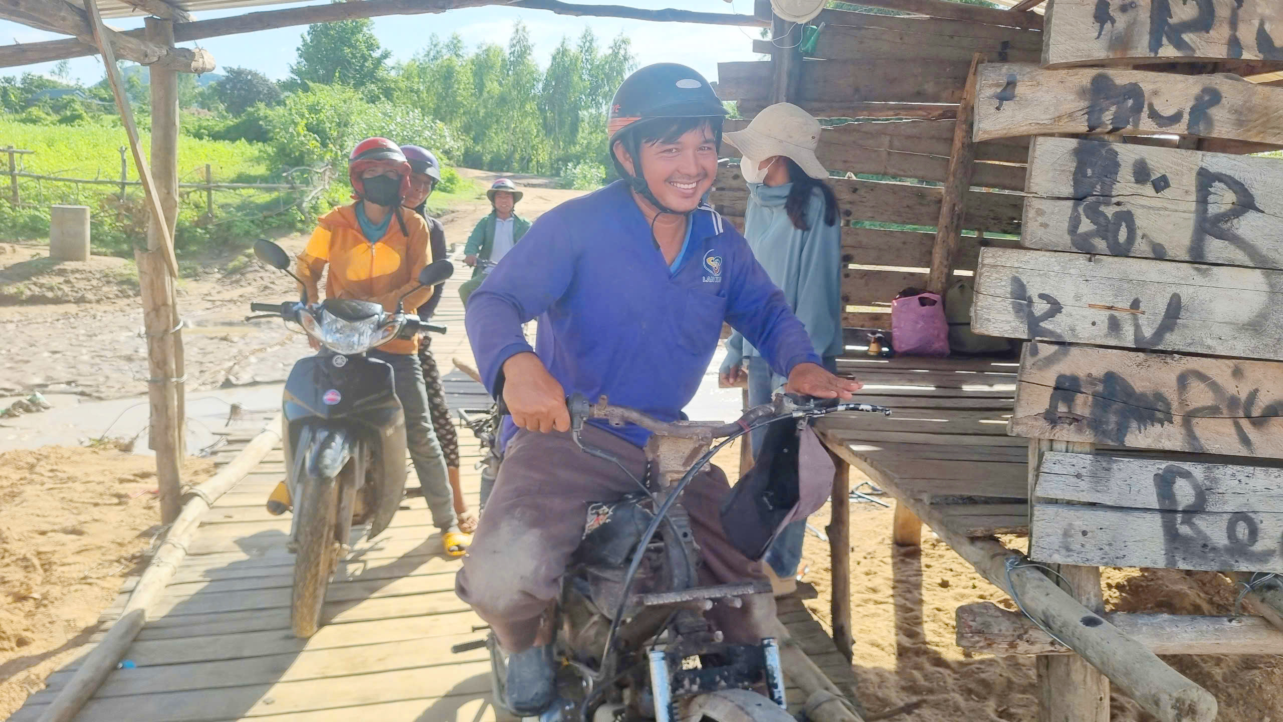 Người dân vui mừng khi qua cầu tạm, rút ngắn thời gian đi lại và chi phí.