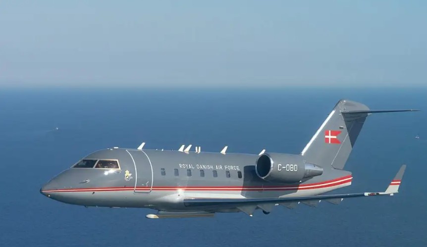 Một máy bay CL-604 Challenger của Lực lượng Không quân Hoàng gia Đan Mạch tuần tra trên vùng biển Đan Mạch. Ảnh: RDAF