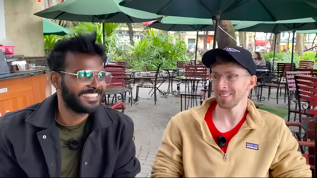 Đoạn clip đang nổi trên nền tảng TikTok ghi lại cảnh chàng trai Ấn Độ có tên tiếng Việt là Gia Hưng đang quay vlog trên phố thì tình cờ gặp anh Tây khác là Will (người Anh) cũng đang cầm điện thoại vừa đi vừa quay. Họ liền rủ nhau vào quán cà phê trò chuyện.