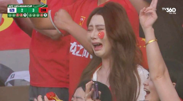 Nữ cổ động viên Trung Quốc bật khóc trước chiến thắng của đội bóng quê nhà.