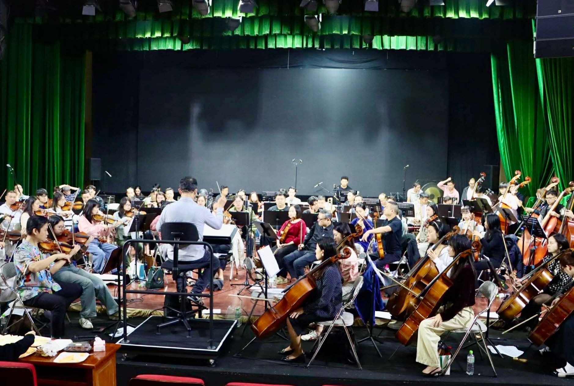 Các nghệ sĩ đang luyện tập cho chương trình. Ảnh: MSO