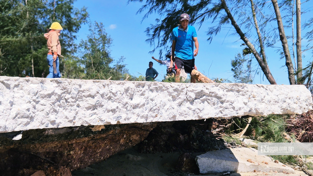 Bà Huỳnh Thị Nơi (trú thôn An Chuẩn) chia sẻ, những năm qua, khu vực thường xuyên đối mặt với sóng lớn vào mùa biển động. Tuy nhiên, đây là lần đầu sóng lớn như vậy, dẫn đến xói lở nghiêm trọng.