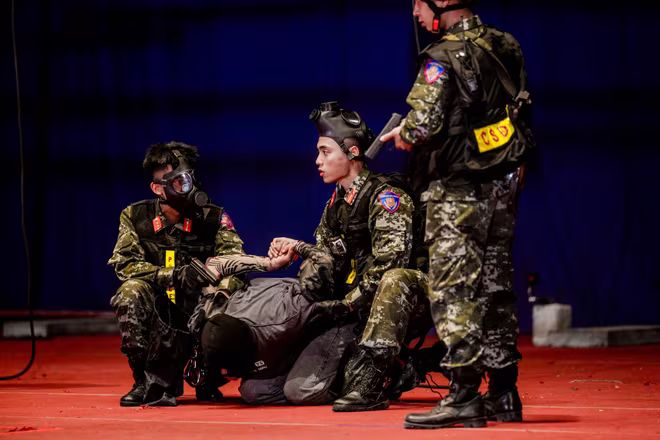 Không chỉ là cảm xúc mãn nhãn, mà đó là khoảnh khắc đánh thức niềm tự hào khi khán giả được thấy tận mắt sự chuyên nghiệp, bản lĩnh và sự hy sinh thầm lặng của lực lượng Cảnh sát cơ động nói riêng và chiến sĩ CAND Việt Nam nói chung. Truy đuổi theo nhóm đối tượng khủng bố vào Trung tâm Hội nghị Quốc gia, chỉ huy nhanh chóng ra lệnh phong tỏa địa điểm và triển khai đội hình. Từng bước chân của các chiến sĩ như dội nhịp lên mặt đất, nặng trĩu không chỉ bởi bộ trang phục nặng ký, mà còn bởi sứ mệnh sống còn của hàng triệu người dân phía sau. Mỗi động tác, mỗi ánh nhìn, mỗi hơi thở đều chứa đựng trọng lượng của kỷ luật, niềm tin và trách nhiệm.