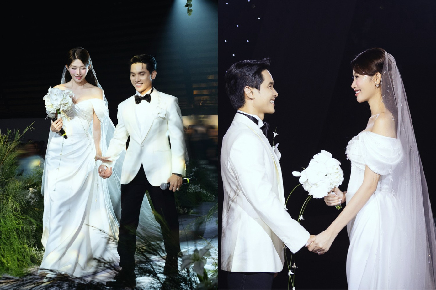 Trong đó, khoảnh khắc cô dâu được bố dắt vào lễ đường, trao tận tay chú rể khiến khách mời xúc động. Trên sân khấu, Quỳnh Châu và Phát Nguyễn cùng trao gửi những lời hứa hẹn cho cuộc sống hôn nhân sắp tới.