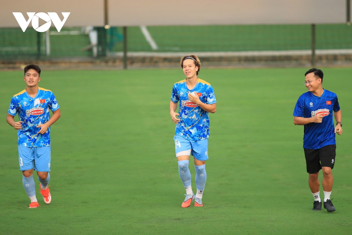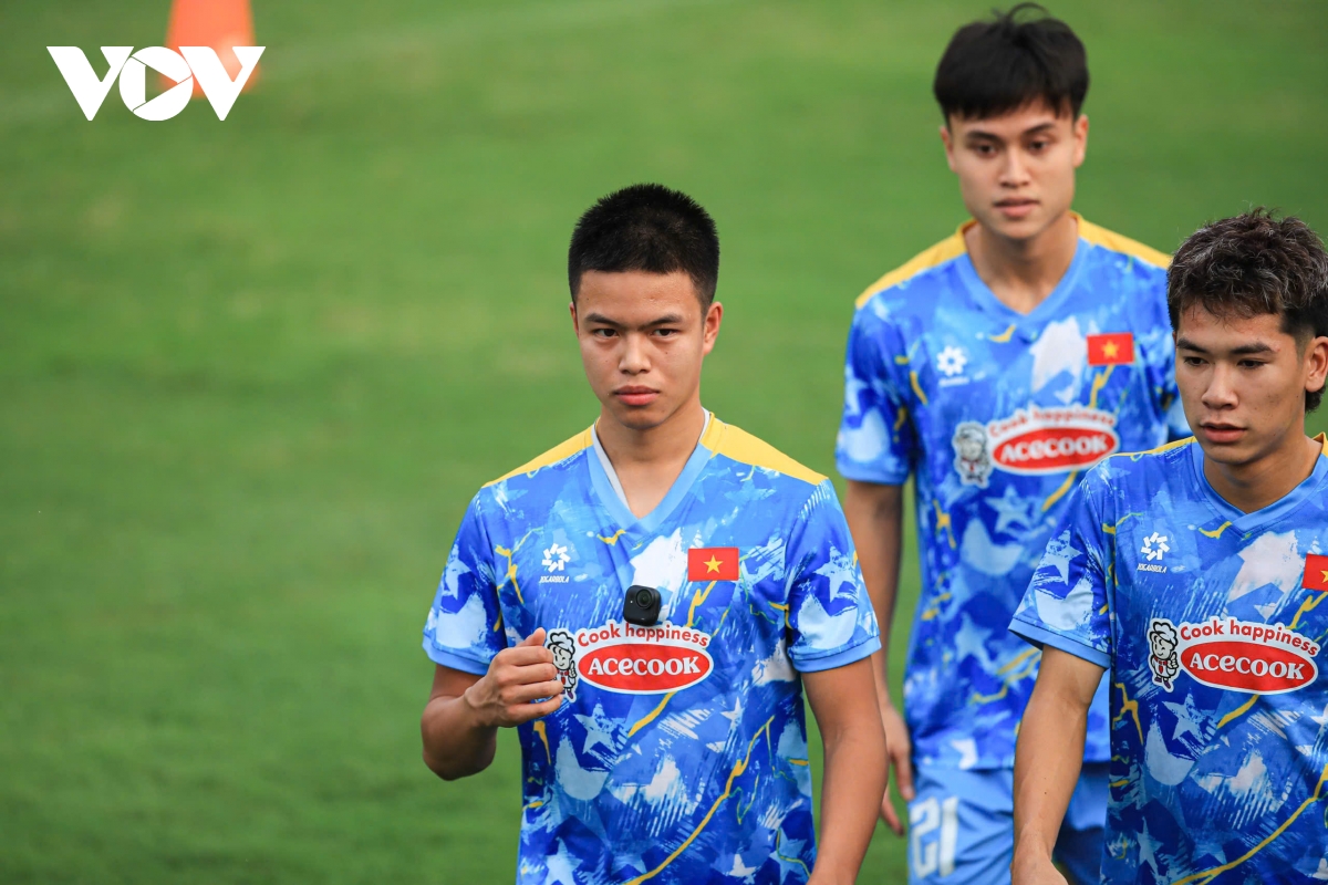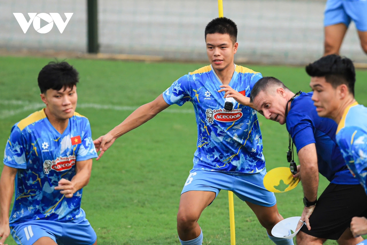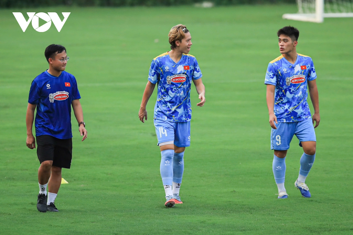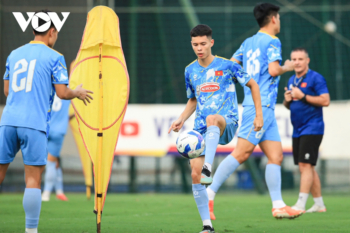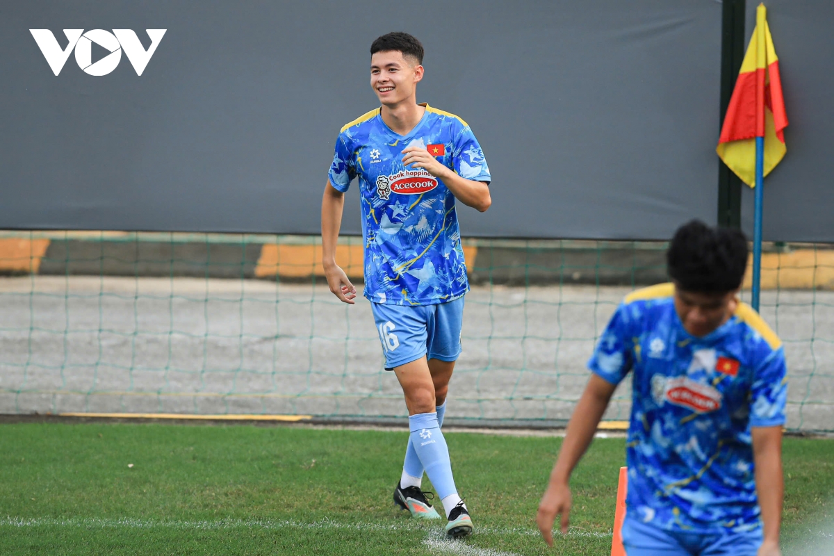 Tiền vệ trưởng thành ở Bulgaria rất hứng khởi trong buổi tập, sẵn sàng cạnh tranh vị trí trong đội hình U23 Việt Nam đi du đấu.
