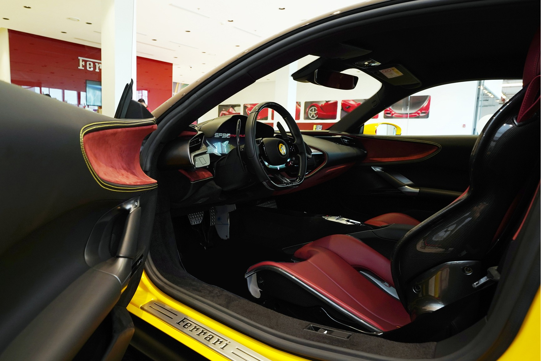 Chiếc xe được cá nhân hóa với ghế đua bọc da màu đỏ. Mẫu siêu xe hybrid này được trang bị động cơ V8 twin-turbo 4.0L, cho ra công suất tối đa 1.000 mã lực. HIện tại, SF90 Stradale đã được thay thế bởi Ferrari 849 Testarossa.
