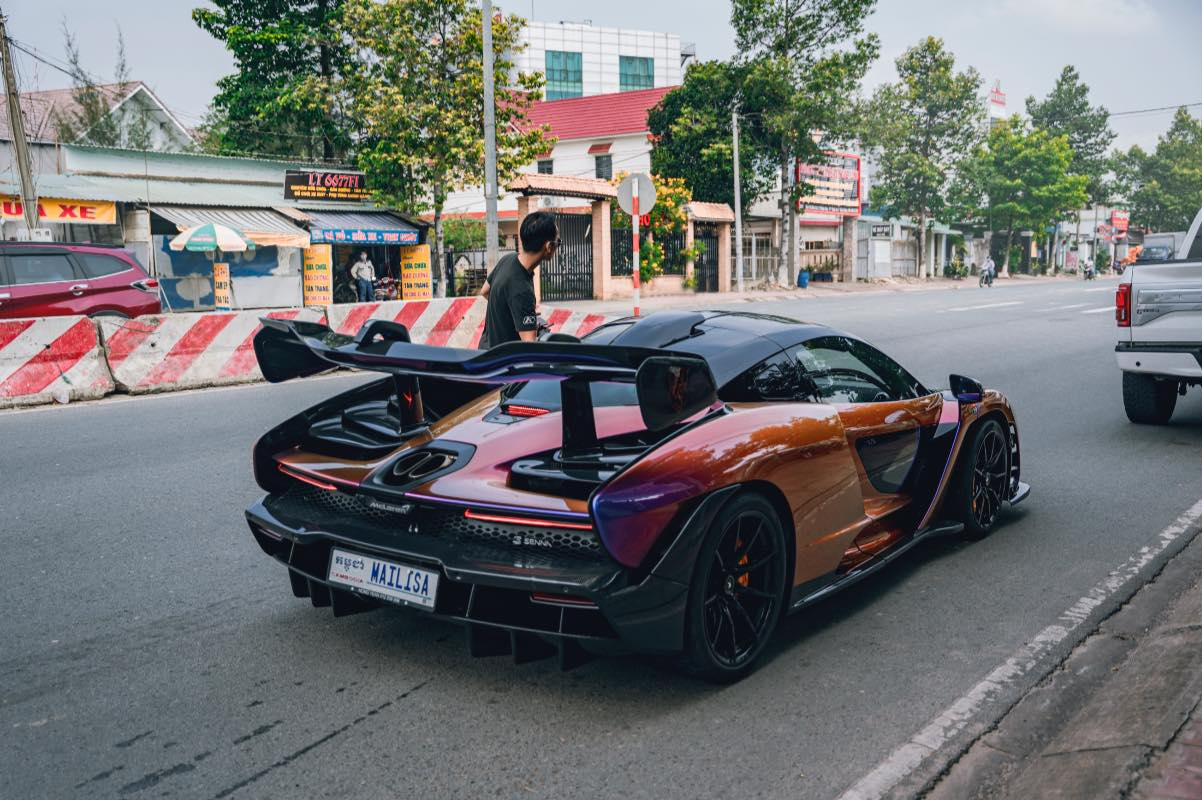 Điểm nổi bật của chiếc xe là lớp sơn ngoại thất đổi màu MSO Cerberus Pearl. Siêu xe này được đăng ký tại Campuchia và sở hữu biển số "MAILISA".