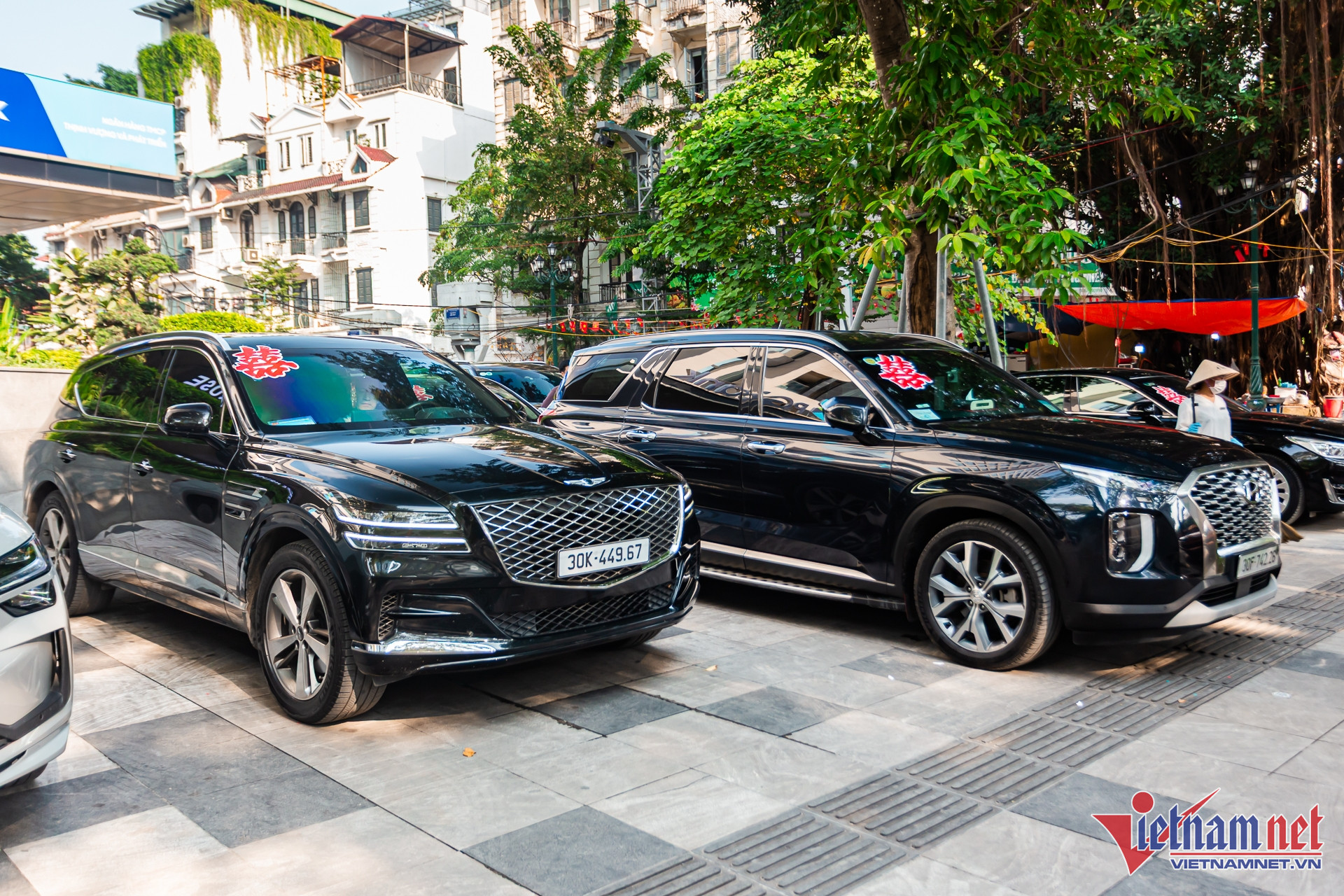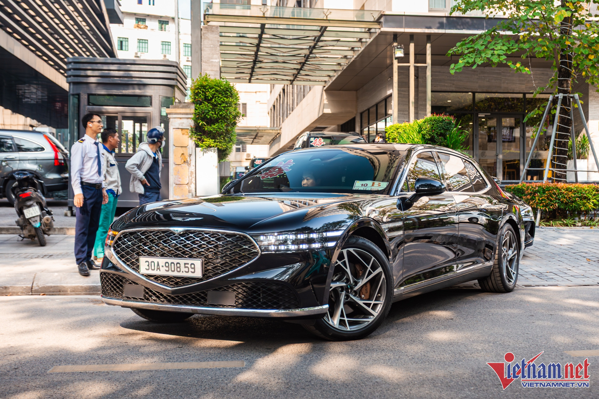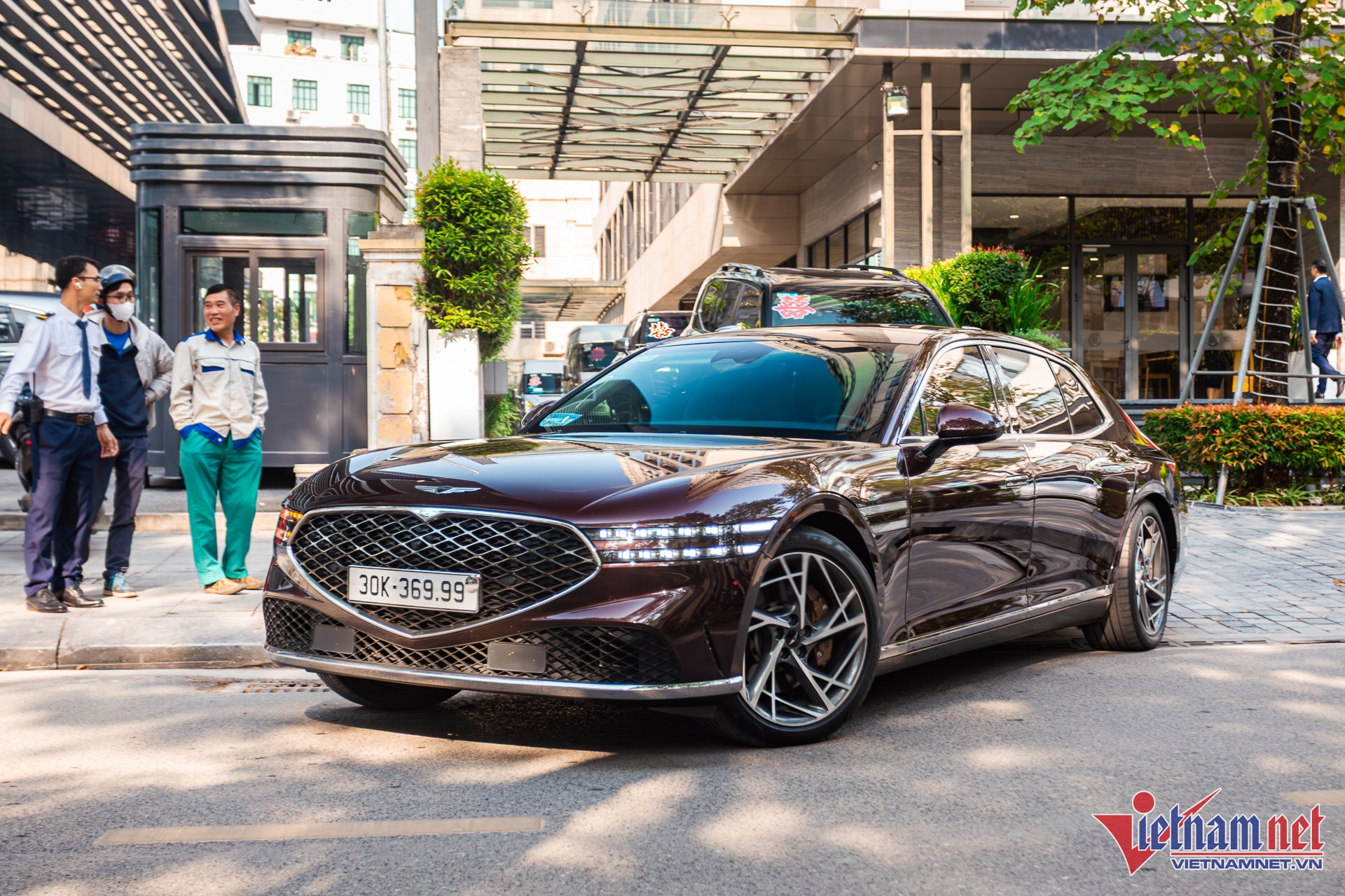 Đặc biệt hơn cả là dàn xe sang Genesis cực hiếm tại Việt Nam, trong đó đáng chú ý là bốn chiếc sedan Genesis G90. Mẫu xe này là đối thủ cạnh tranh với Mercedes-Benz S-Class, BMW 7 Series hay Audi A8. Mỗi chiếc G90 nhập khẩu từ Hàn Quốc đều có giá lăn bánh ước tính gần 8 tỷ đồng.