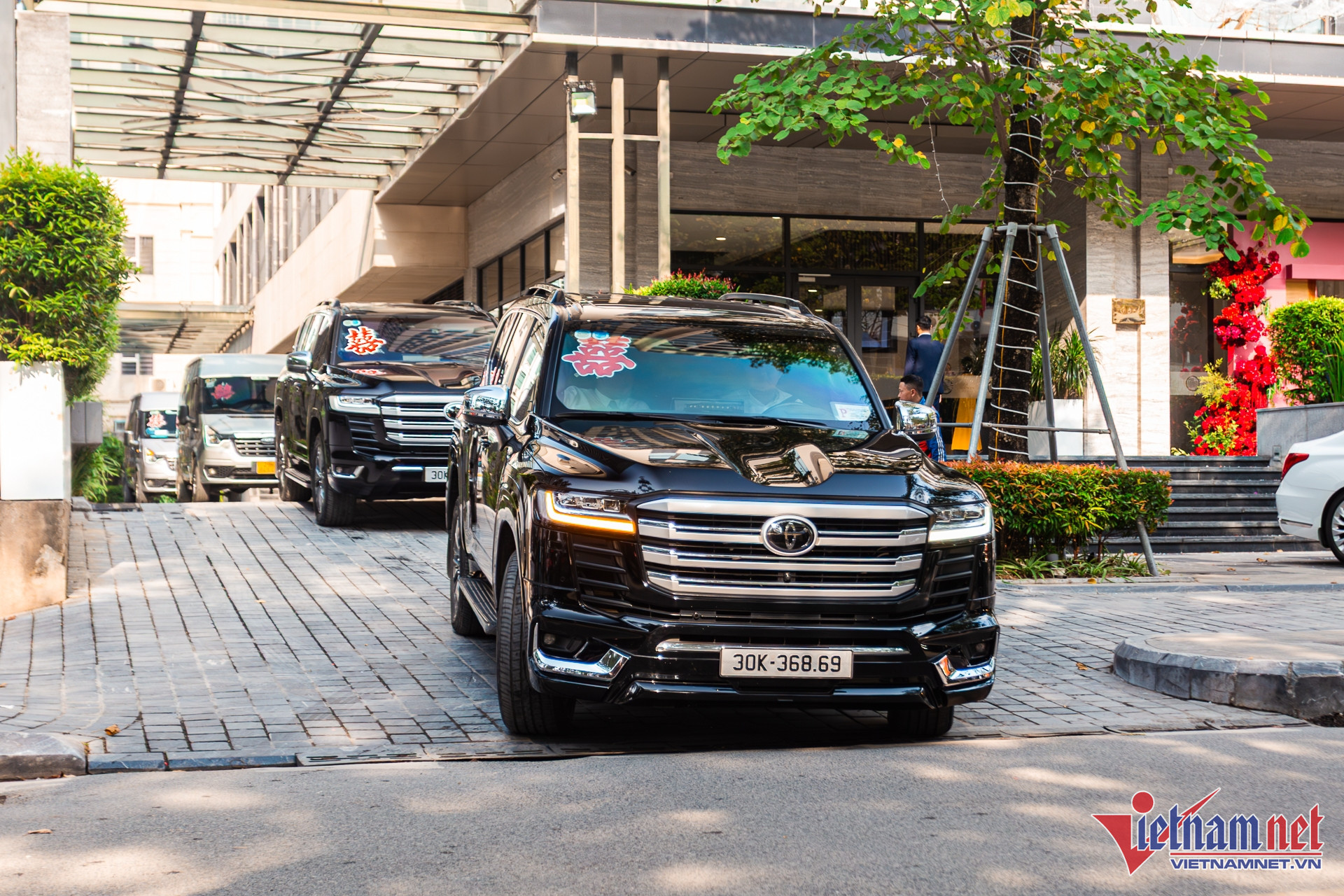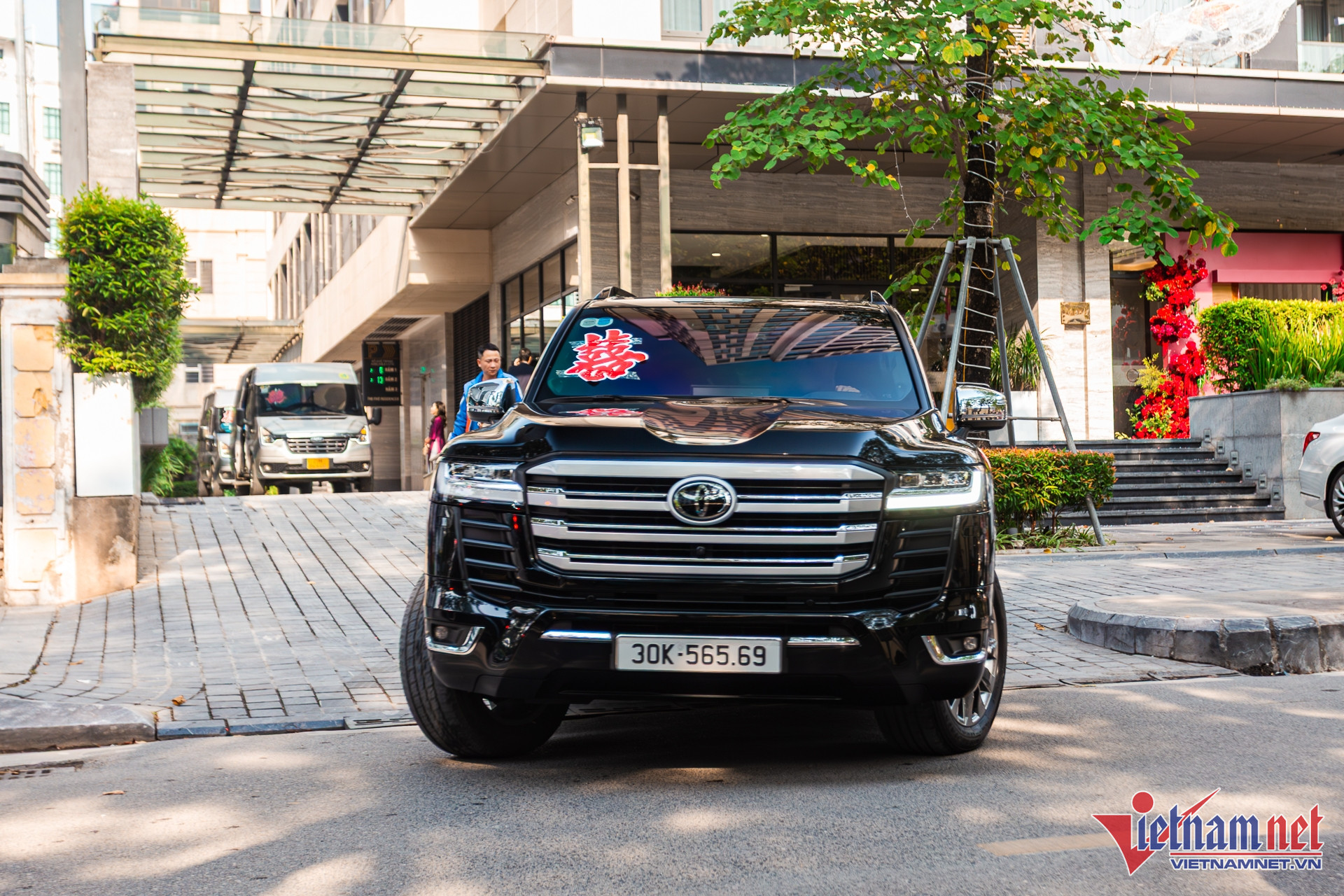 Bên cạnh đó, đoàn xe còn có cặp đôi Toyota Land Cruiser LC300 mang biển số khá đẹp. Mỗi chiếc SUV hạng sang có giá lăn bánh hơn 5 tỷ đồng, trong đó chiếc gắn biển số 30K-565.69 dùng biển đấu giá (trị giá 45 triệu đồng).