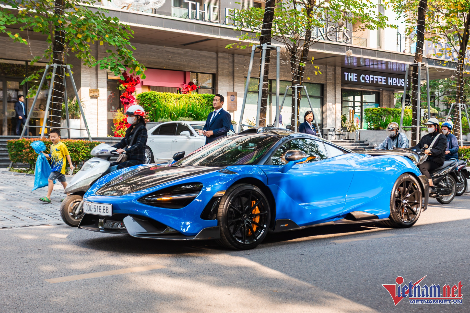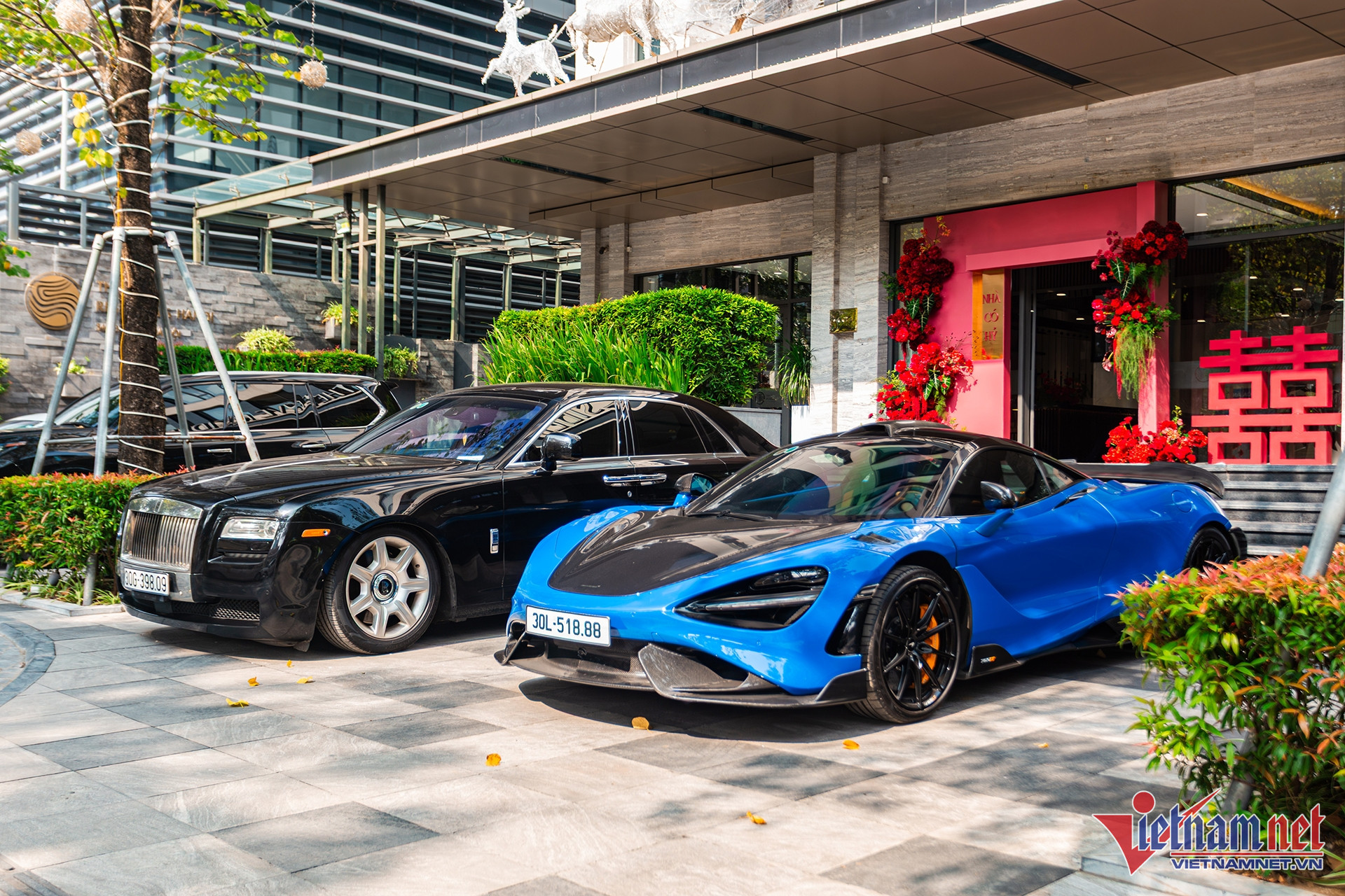Đắt tiền nhất dàn xe dự lễ ăn hỏi là chiếc McLaren 765LT, thuộc sở hữu của một doanh nhân trẻ tuổi. Đây cũng là chiếc 765LT duy nhất tại Việt Nam có ngoại thất sơn màu xanh Paris Blue - màu sơn trong bảng màu cá nhân hóa MSO (McLaren Special Operation). Thời điểm mua mới, siêu xe này có giá lăn bánh hơn 35 tỷ đồng. Xe được nhập khẩu thông qua đại lý tư nhân ở TP.HCM.
