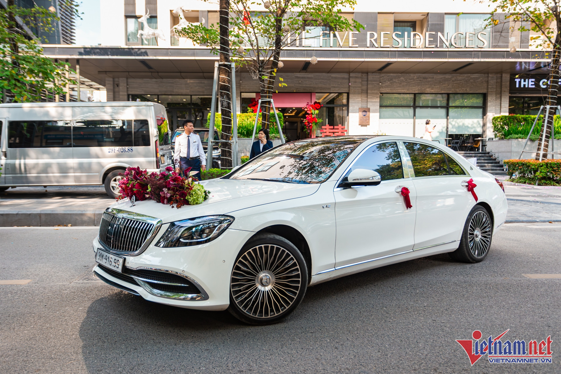 Chiếc sedan siêu sang Mercedes-Maybach S 650 trị giá hơn 15 tỷ đồng được sơn hai màu trắng - đen có mặt tại đám hỏi từ khá sớm. Tuy nhiên, chiếc xe sau đó không tham gia trong đoàn xe về nhà trai. Mẫu xe này hiện đã bị thay thế bằng mẫu Maybach S 680 có giá tương đương, nhập khẩu thông qua đại lý chính hãng lẫn tư nhân.