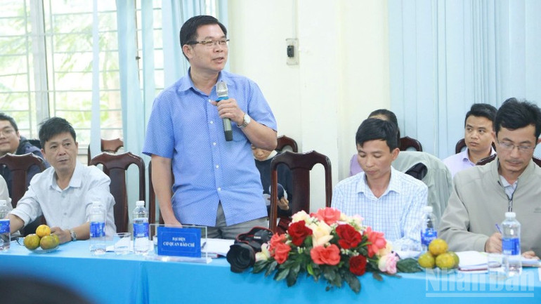 Nhà báo Nguyễn Công Lý, Trưởng Văn phòng đại diện Báo Nhân Dân tại Đắk Lắk đặt câu hỏi tại buổi họp báo.