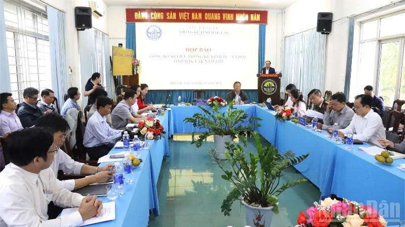 Buổi họp báo có sự tham dự của đại diện các sở, ngành và cơ quan báo chí. Tại đây, ông Hồ Ngọc Quang, Trưởng Thống kê tỉnh Đắk Lắk cho biết, trong năm 2025, với tinh thần quyết tâm cao, nỗ lực lớn và hành động quyết liệt theo chủ đề “Kỷ cương trách nhiệm; chủ động kịp thời; tinh gọn hiệu quả; tăng tốc bứt phá”, tình hình kinh tế-xã hội tỉnh năm 2025 tiếp tục phát triển.