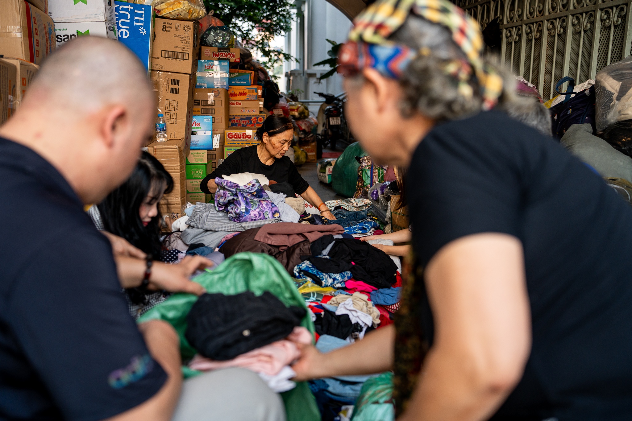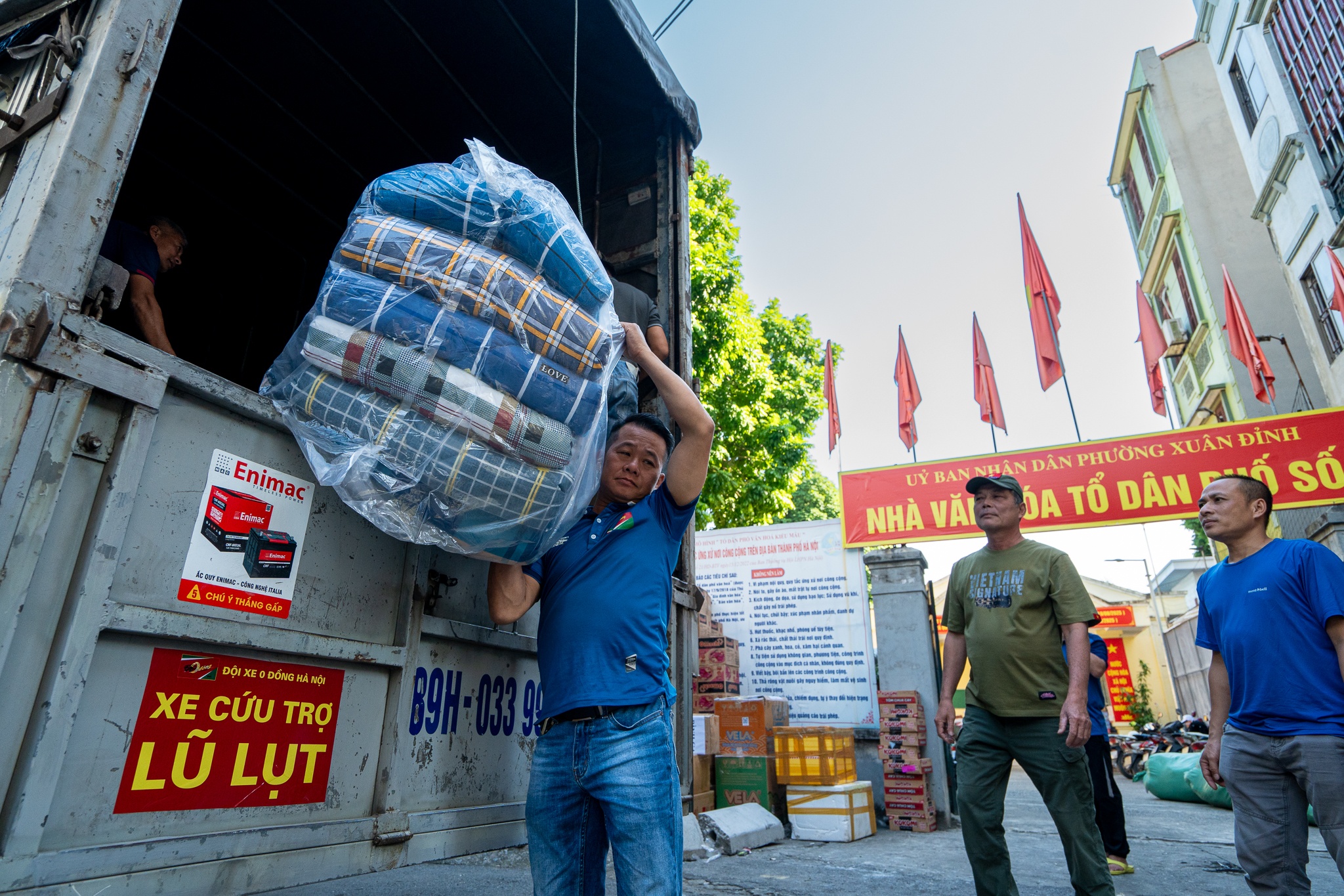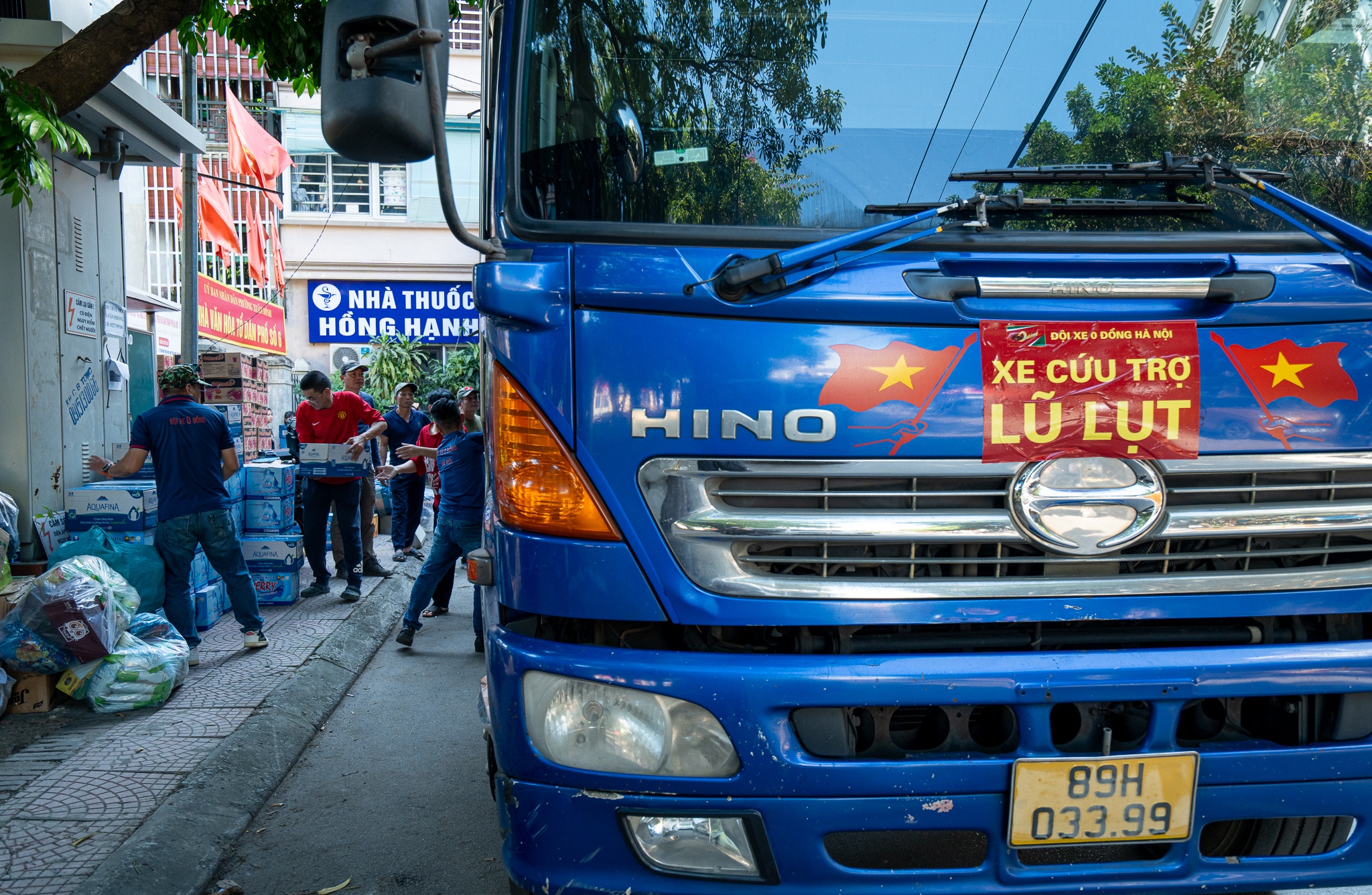 Tại điểm tiếp nhận ngõ 105 Xuân La, Tây Hồ, dù trời đã chập tối, những chiếc xe chở đồ cứu trợ vẫn ra vào liên tục. Mỗi món quà gửi đến là một tấm lòng hướng về đồng bào miền Trung. Anh Lỗ Minh Tuấn (49 tuổi, đội trưởng đội xe 0 đồng) cho biết: "Đội tôi nhận đồ quyên góp của bà con trong ngày hôm nay và sáng mai phân loại và vận chuyển đi sớm nhất. Ngoài ra, toàn bộ số tiền đội kêu gọi được khoảng 140 triệu sẽ dùng để mua những vật phẩm như gạo, dầu ăn... vào cho bà con tại Sơn Hòa và Phú Yên."