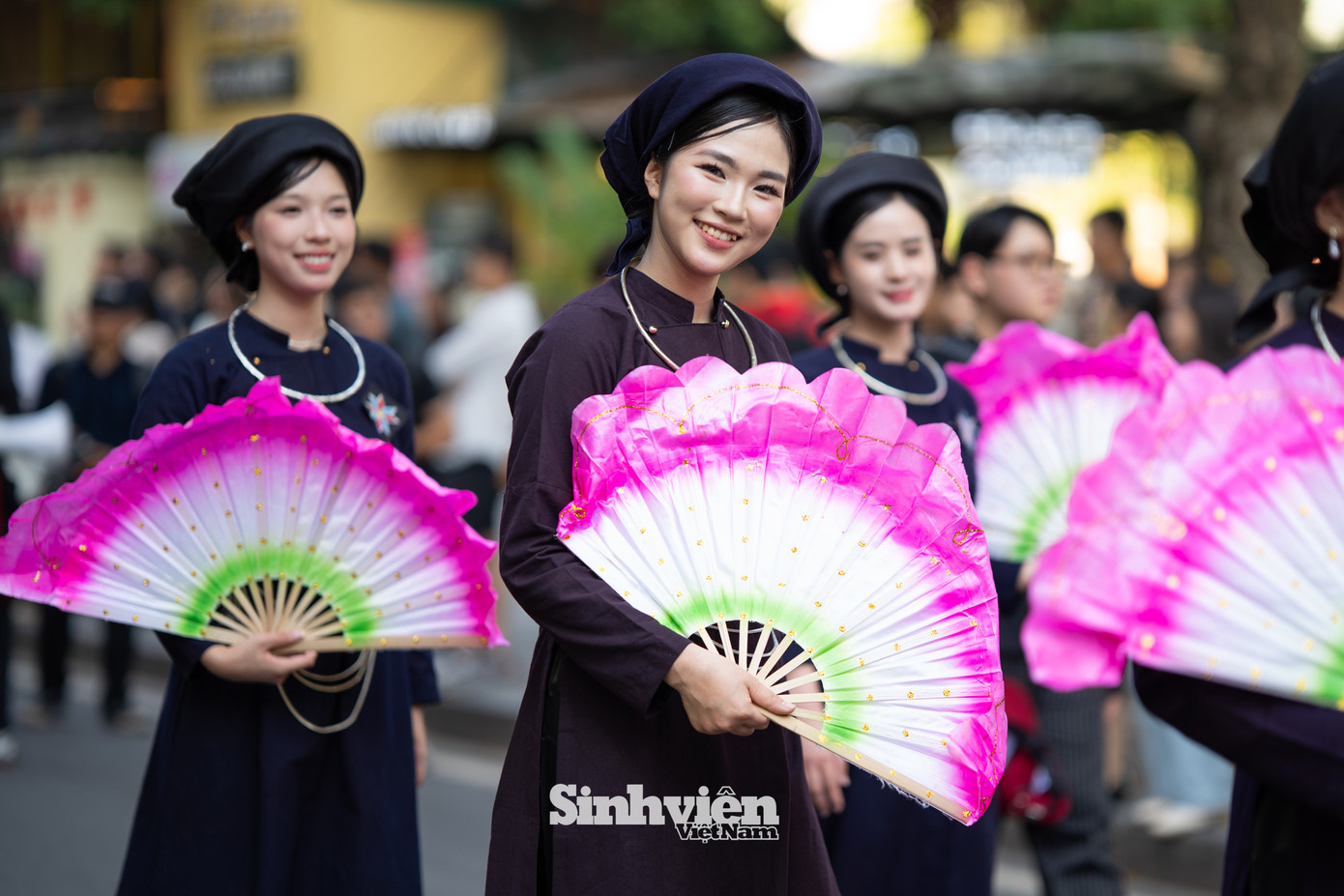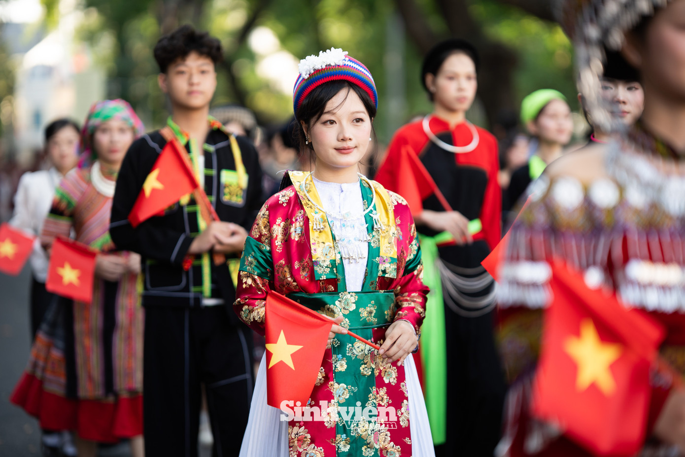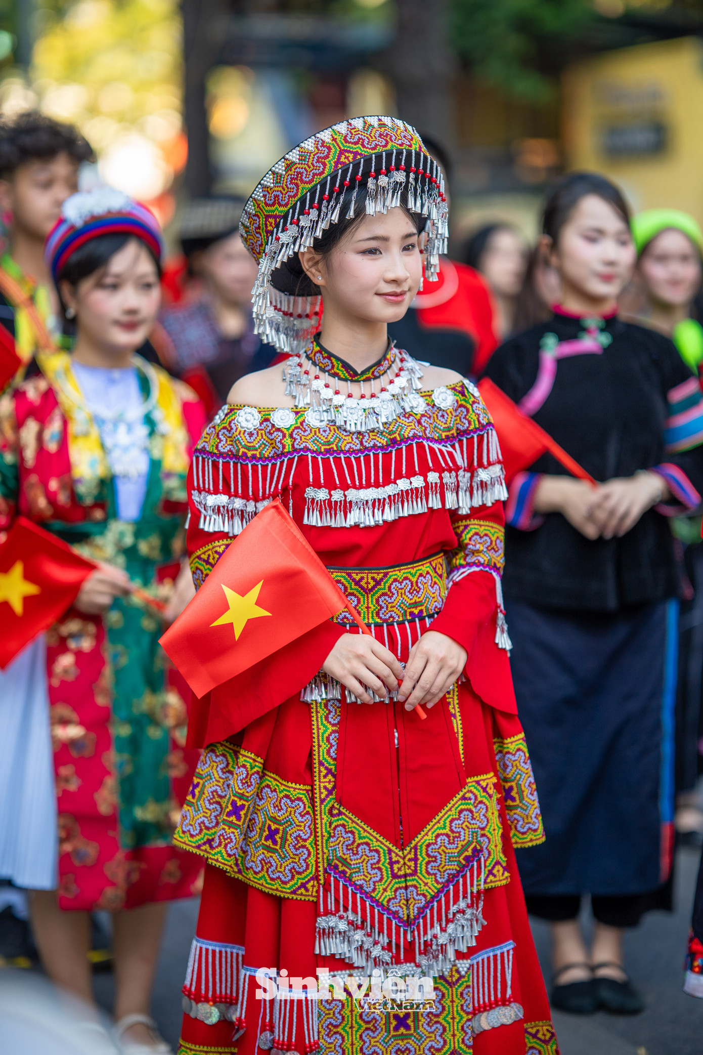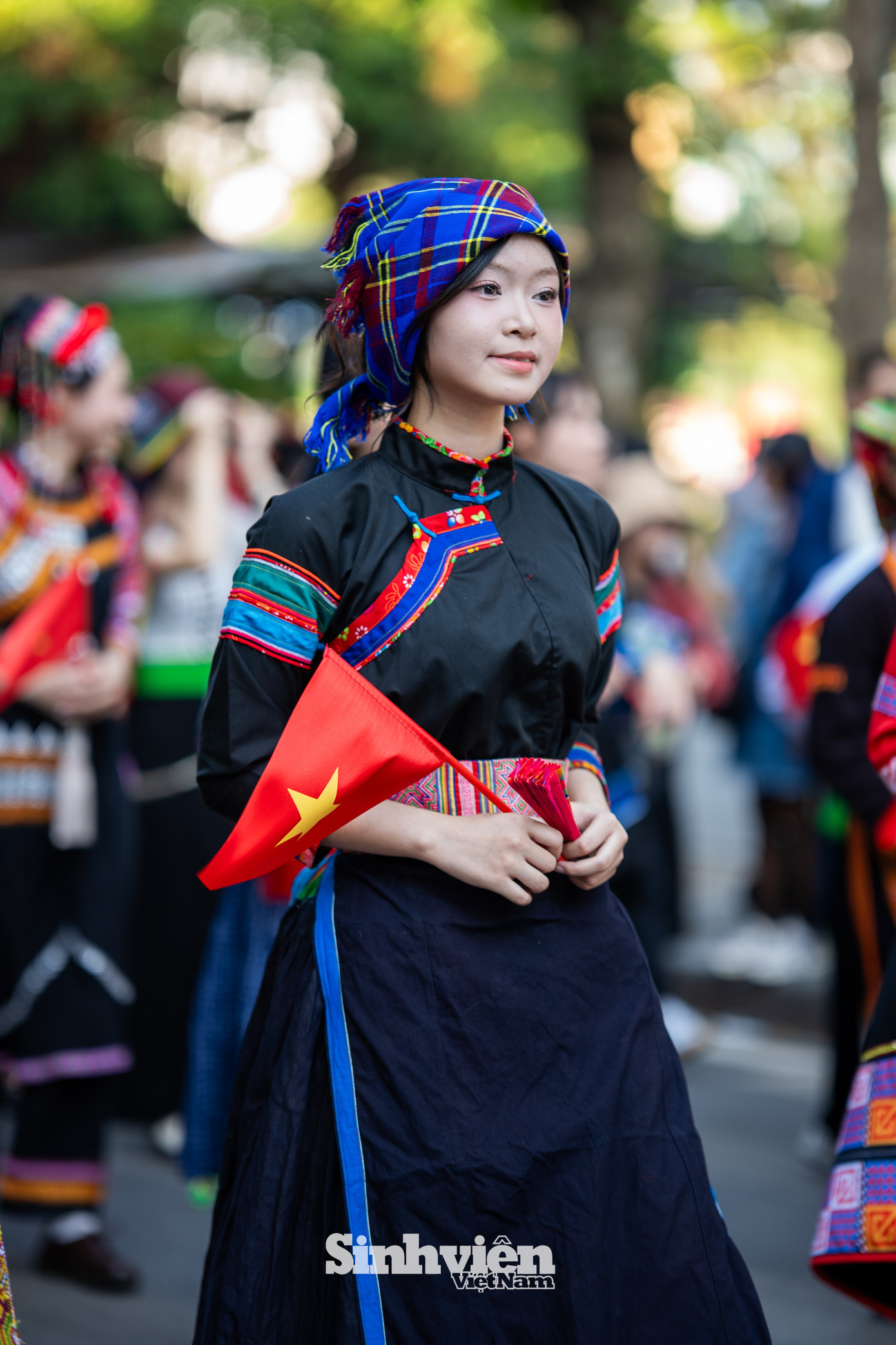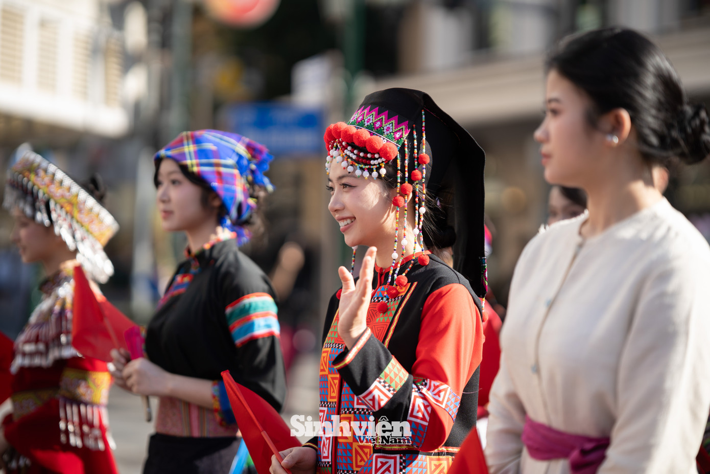 Tham gia lần thứ ba, bạn Thu Hương - sinh viên năm hai Trường Đại học Văn hóa Hà Nội cho biết, ngoài các bộ trang phục do ban tổ chức cung cấp, nhiều bạn trẻ cũng tự chuẩn bị trang phục truyền thống cho riêng mình. "Hôm nay mình cảm thấy rất vui. Mình đang mặc trang phục của người Miêu, với nhiều họa tiết bạc tạo ra tiếng kêu rất vui tai. Mình cũng rất thích tìm hiểu về các bộ trang phục truyền thống. Mình thấy thú vị khi hôm nay có nhiều em bé mặc áo dài và hòa vào dòng người, rất đáng yêu", Thu Hương chia sẻ.