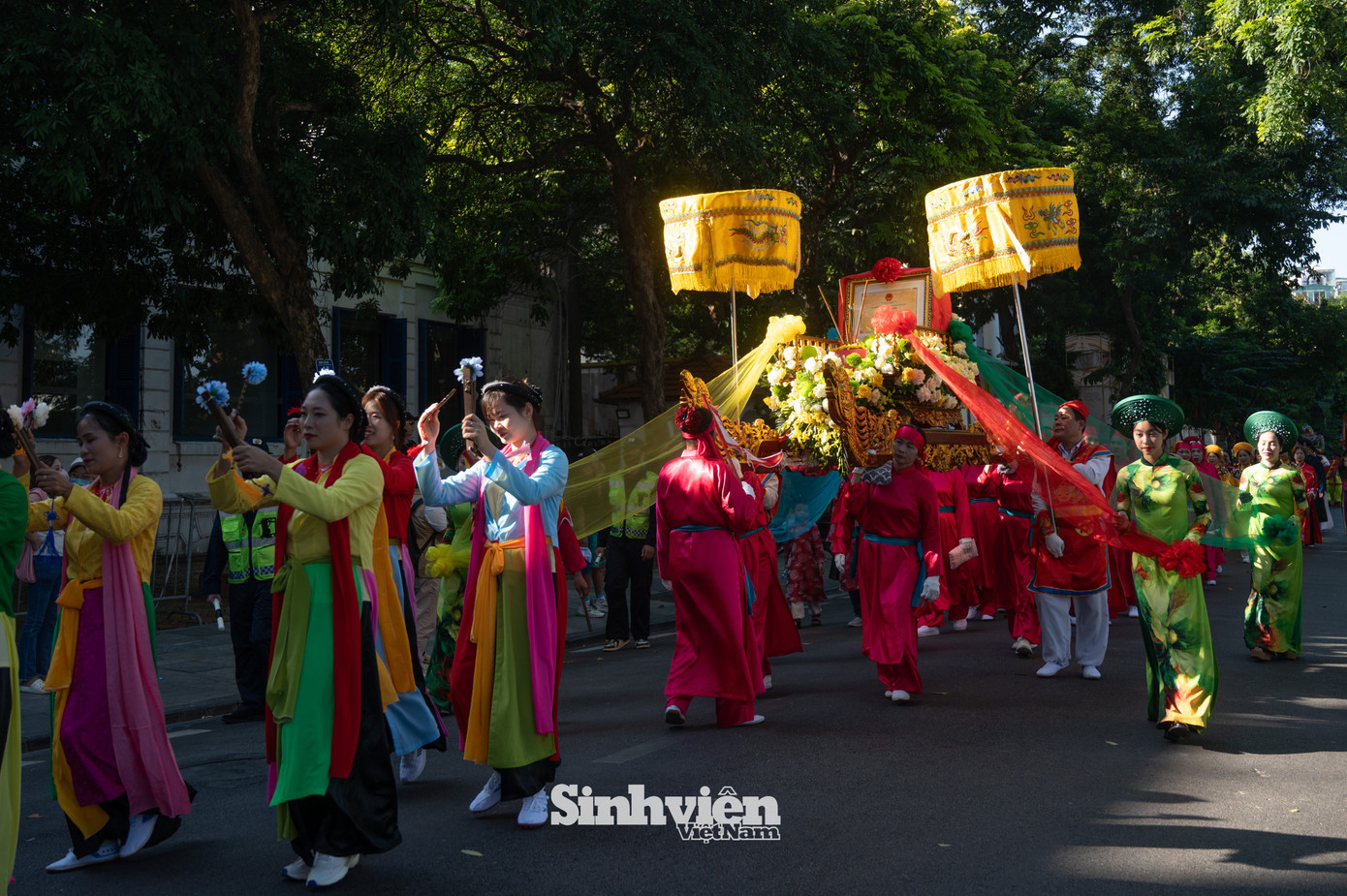 Đoàn diễu hành được chia thành nhiều khối theo chủ đề, tạo nên một hành trình ký ức đầy màu sắc, đưa du khách trở lại dòng chảy lịch sử dân tộc.